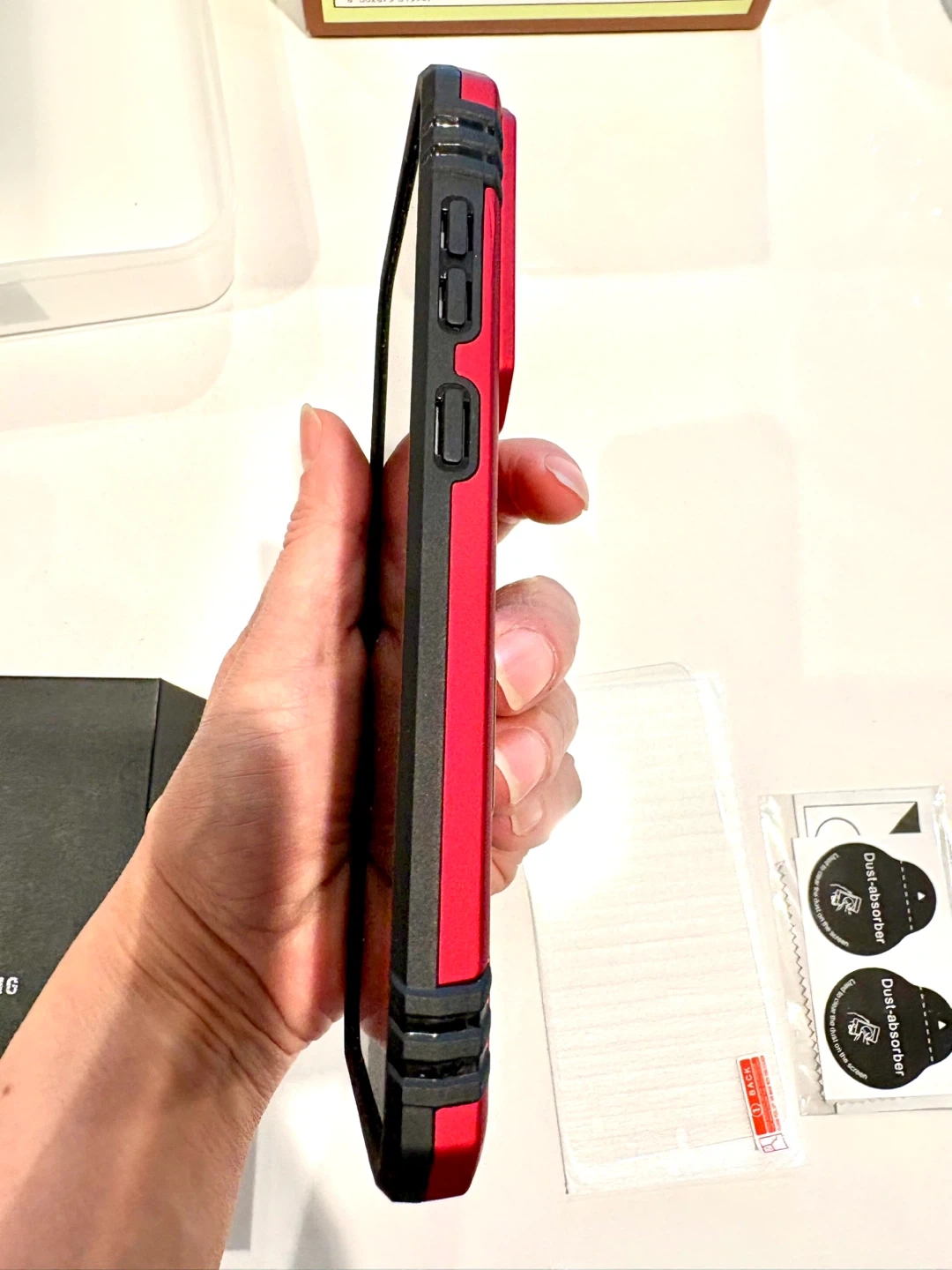 Includes case , a screen protector, dust absorbers, a charger and original box too!