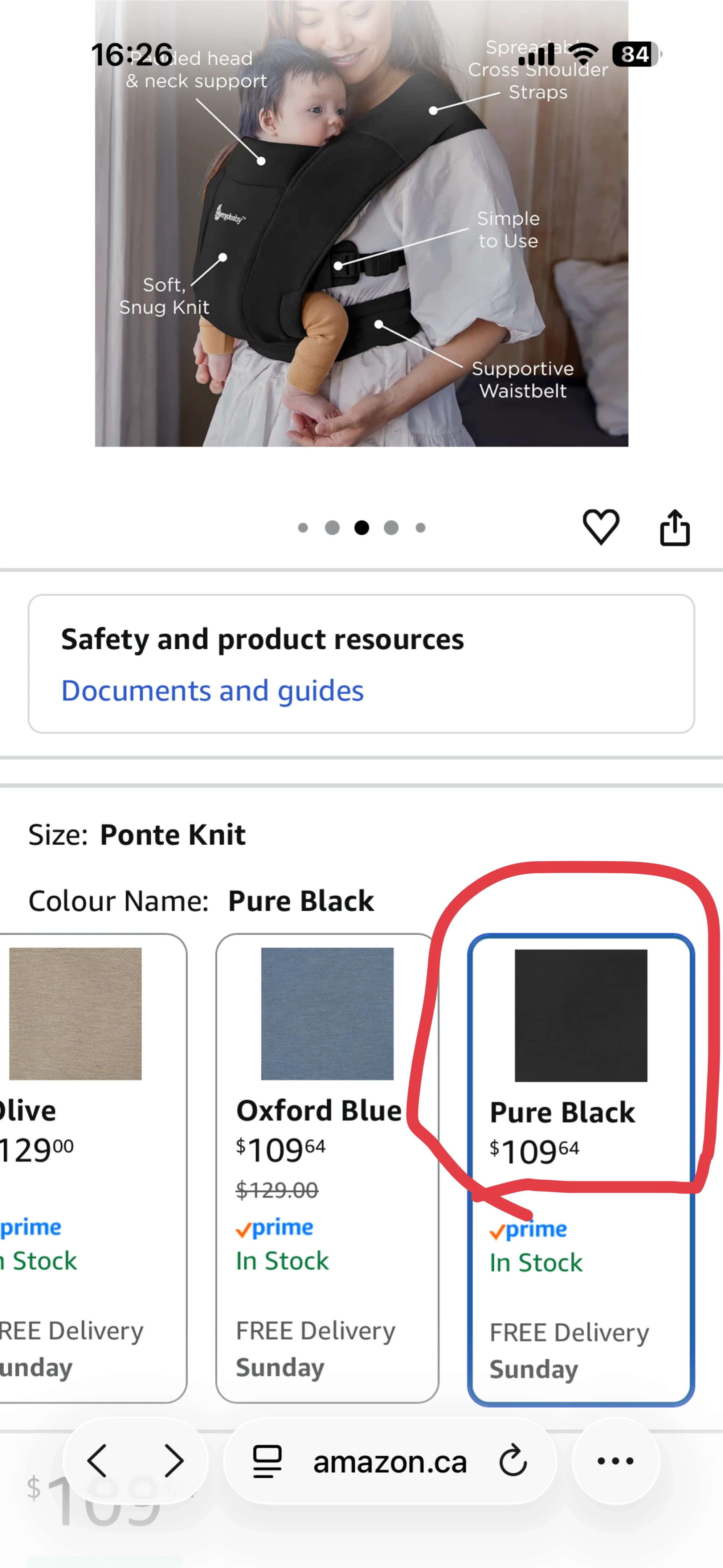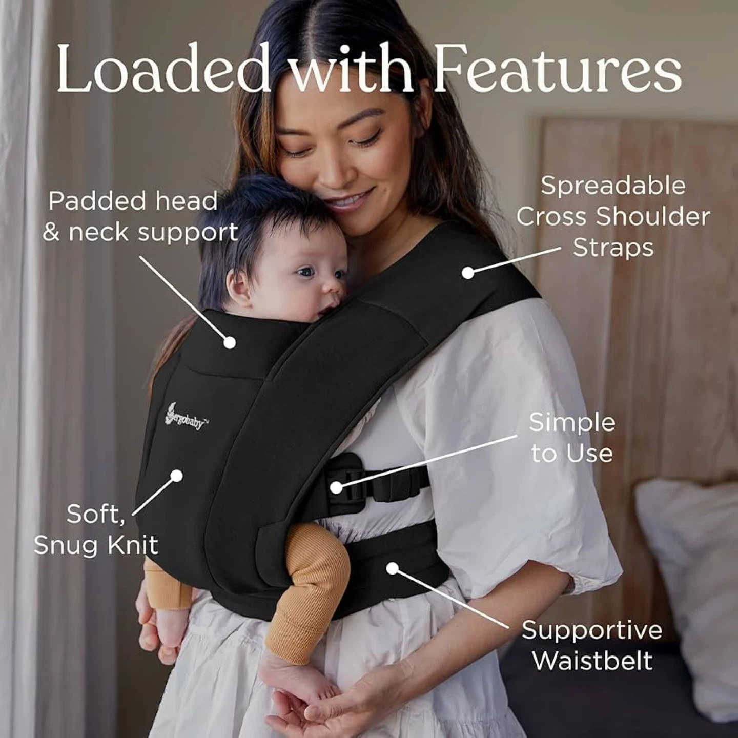 Ergobaby Embrace Cozy Newborn Baby Wrap Carrier (7-25 Pounds), Ponte Knit, Pure Black