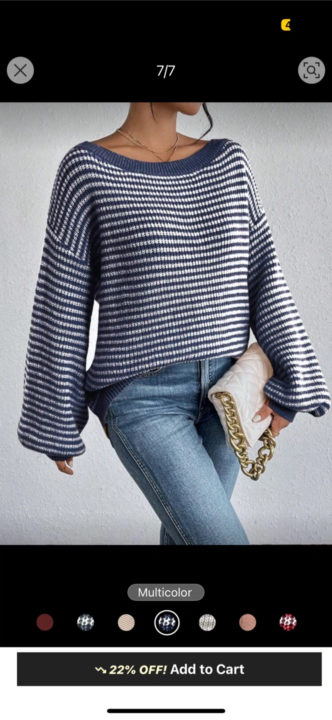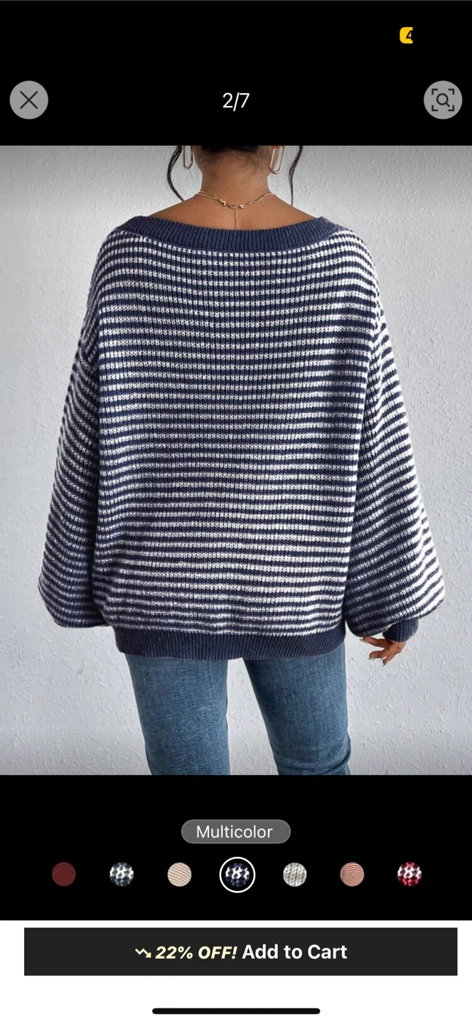 I'm selling a LUNE women's striped drop shoulder casual loose sweater. It's a really cute sweater, perfect for the cooler weather!