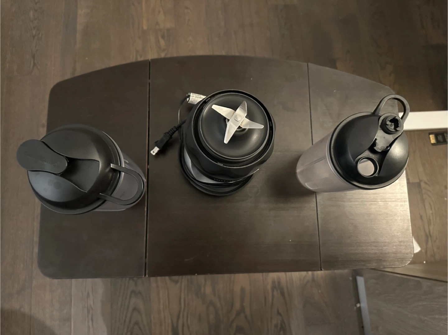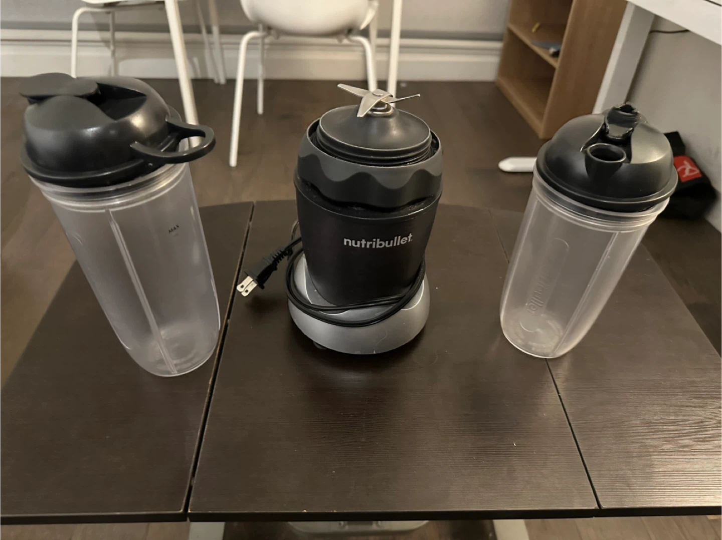 Selling a NutriBullet blender, perfect for making smoothies and shakes! It comes with two cups with lids so you can take your creations on the go. It's in good condition and ready for a new kitchen