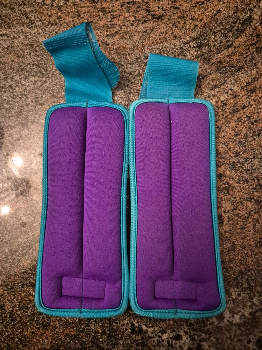 Selling a pair of ankle (or wrist) weights in great condition! They're purple with teal trim and have adjustable straps for a comfortable fit. Fabric is also super soft. Perfect for adding some extra resistance to your workouts! 2 lbs