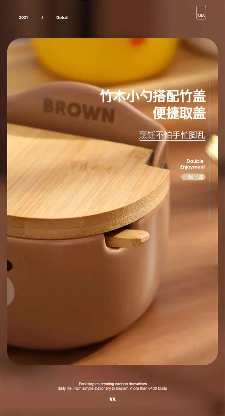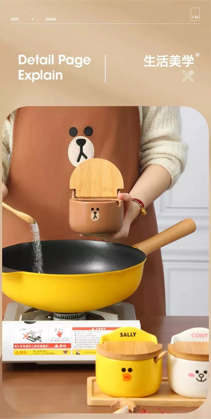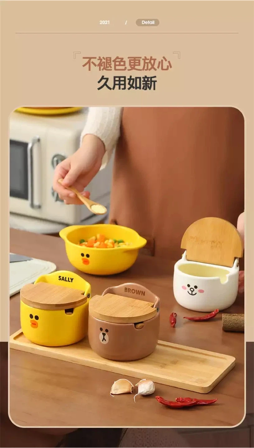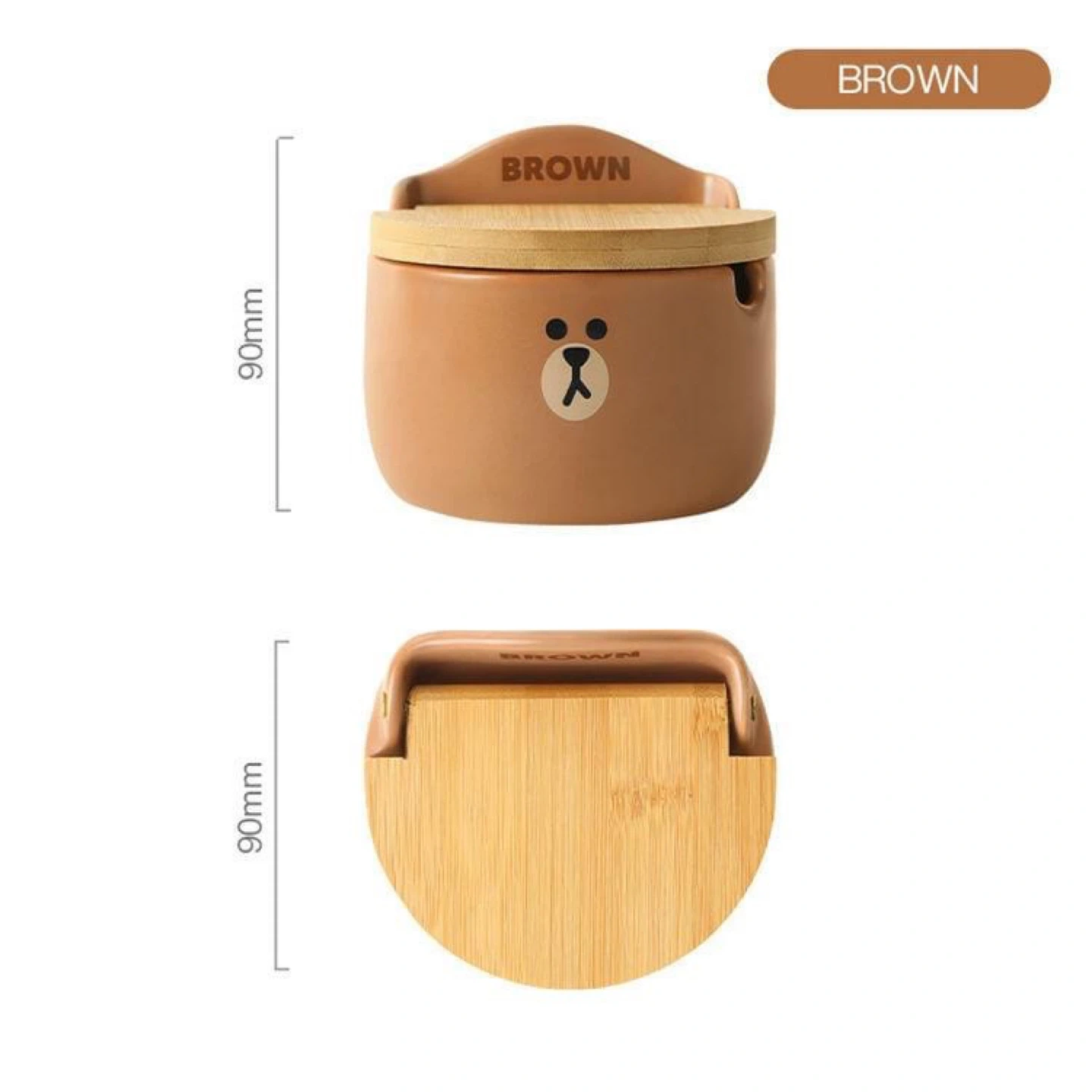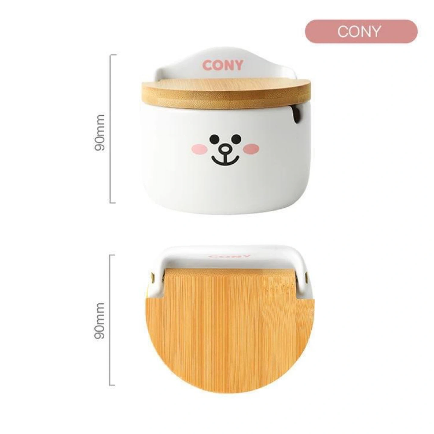 Here's a cute Line Friends Cony ceramic seasoning jar! It's about 90mm in size and would be perfect for adding a touch of fun to your kitchen. This jar is great for storing your favourite spices or condiments