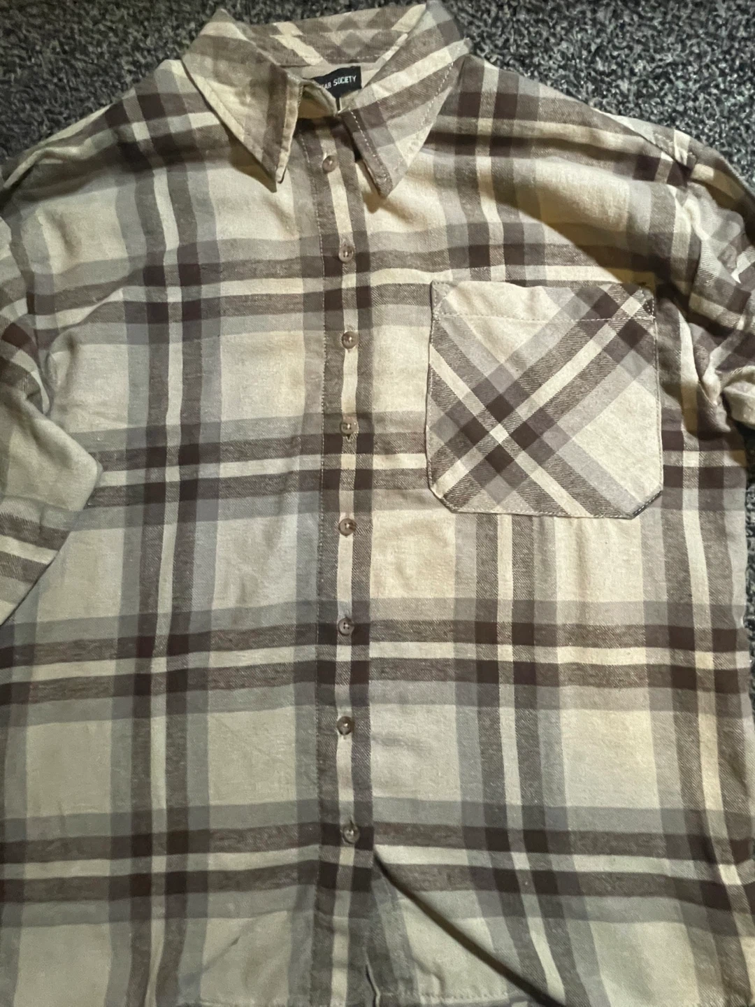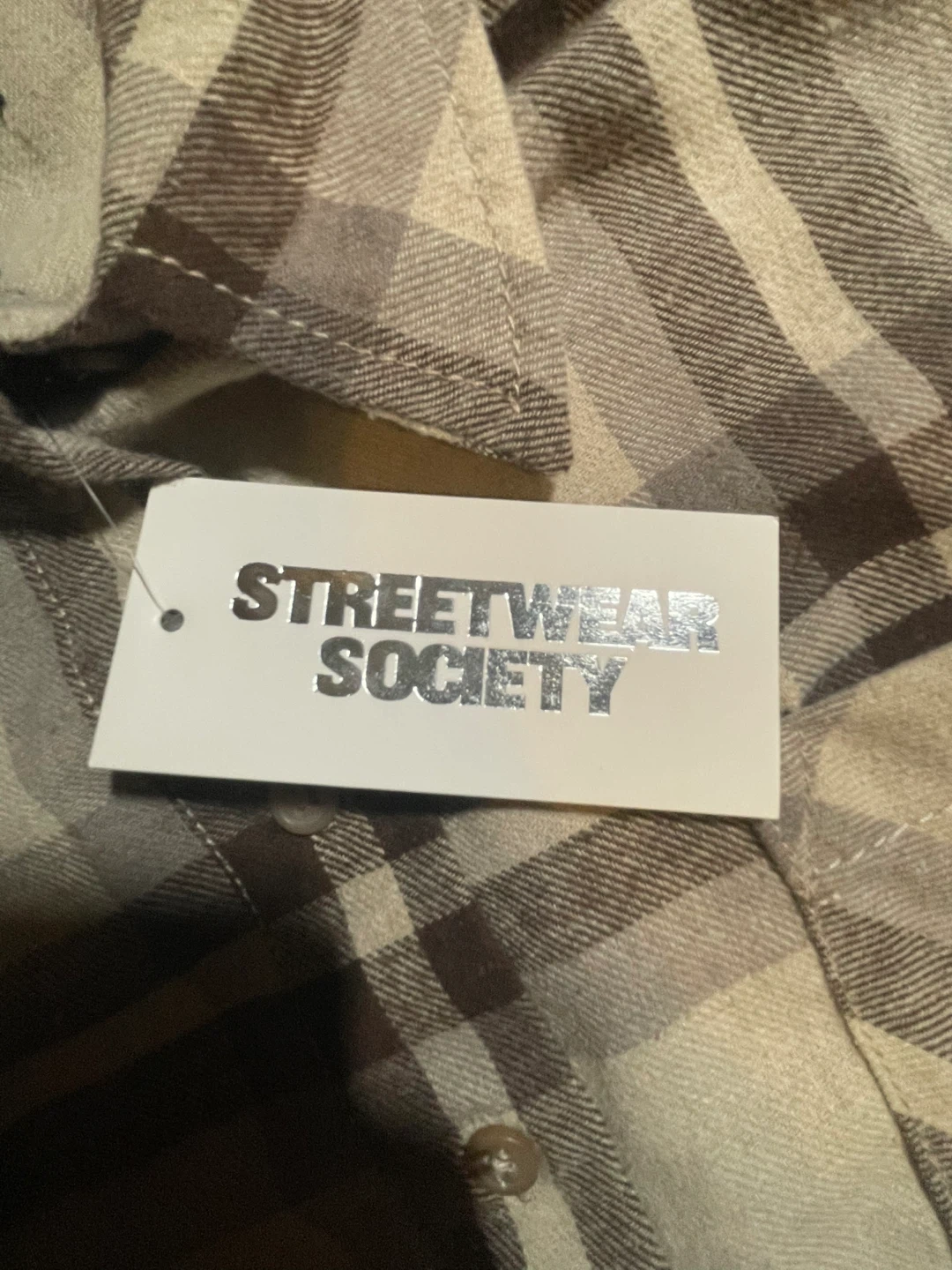 Here's a Streetwear Society flannel shirt in a classic plaid pattern! It's a size women’s medium and in great condition. Perfect for layering or wearing on its own. It’s is brand new with the tag still on!