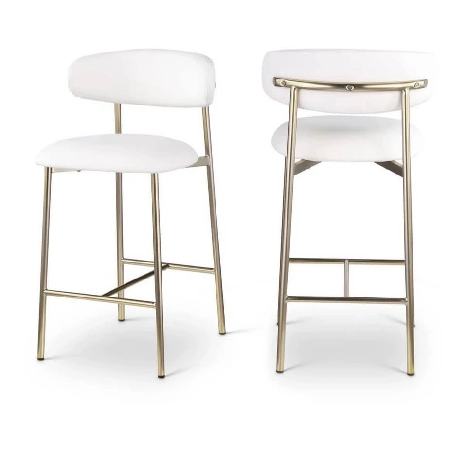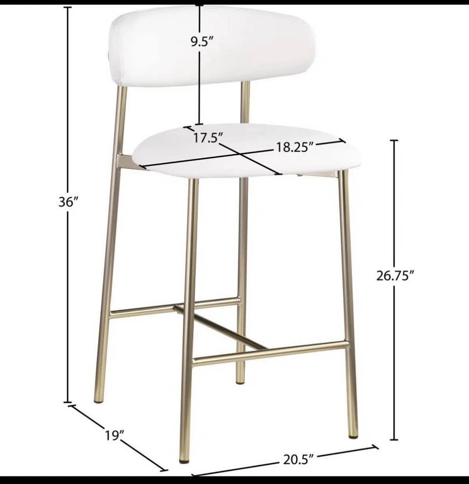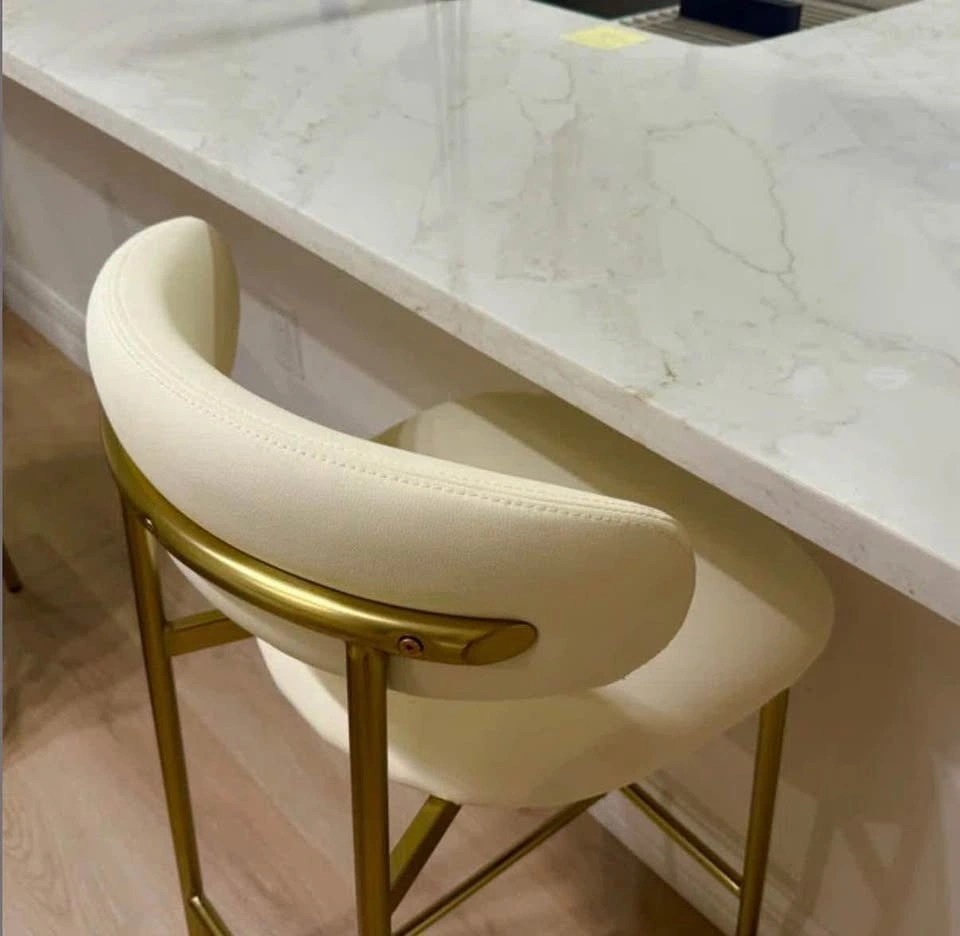 Stylish and comfortable counter stools upholstered in soft vegan leather with a sleek brushed metal frame. These stools offer great support, a modern look, and are perfect for kitchen islands or home bars. A beautiful blend of elegance and comfort an easy way to elevate any space.
