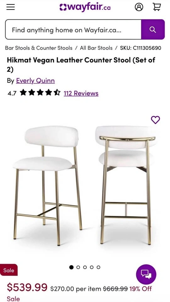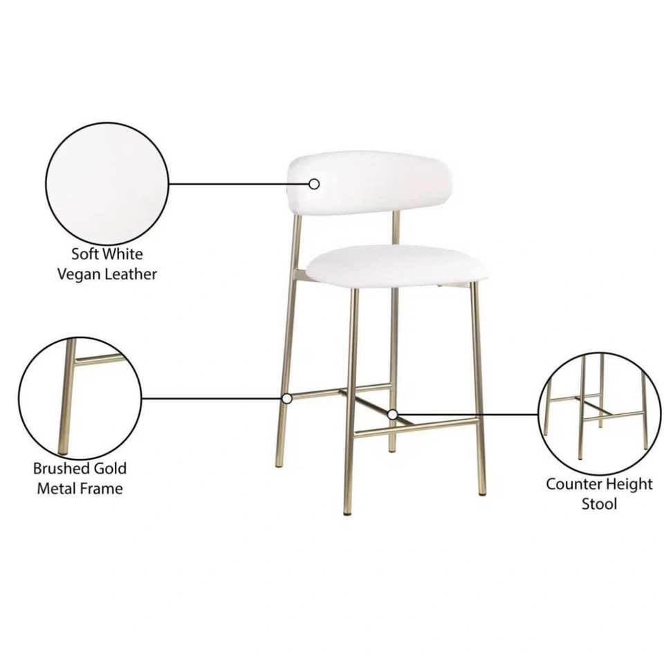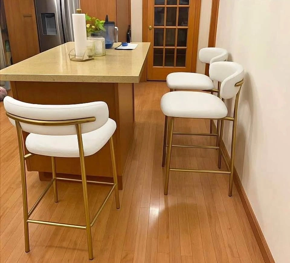 Stylish and comfortable counter stools upholstered in soft vegan leather with a sleek brushed metal frame. These stools offer great support, a modern look, and are perfect for kitchen islands or home bars. A beautiful blend of elegance and comfort an easy way to elevate any space.