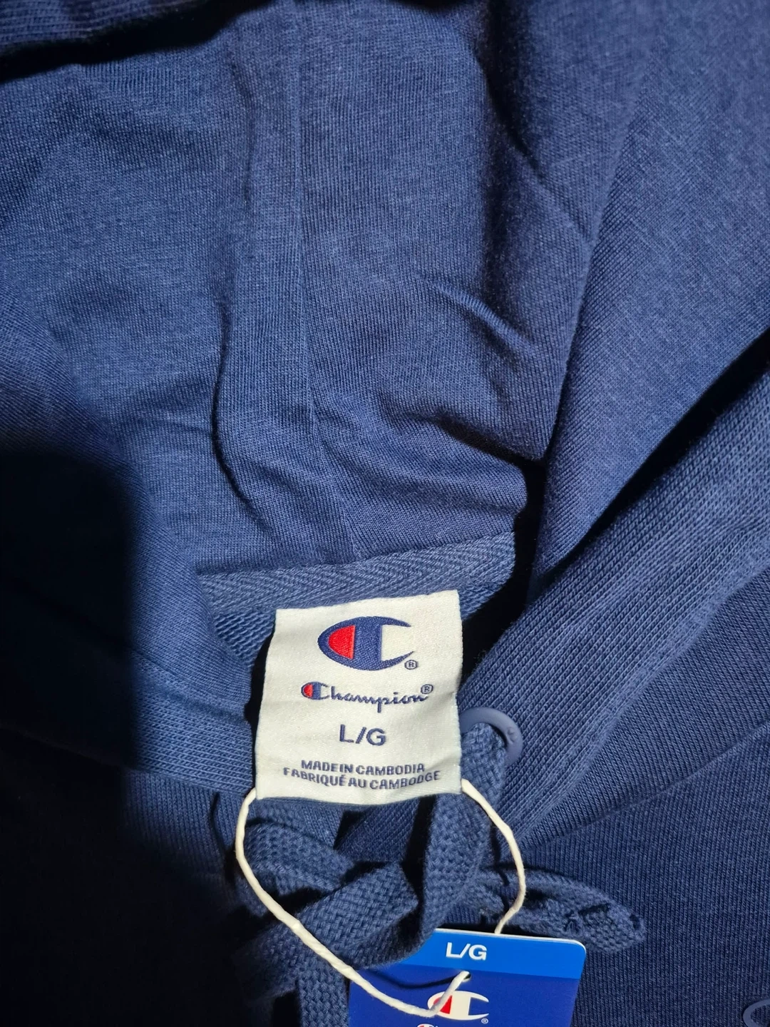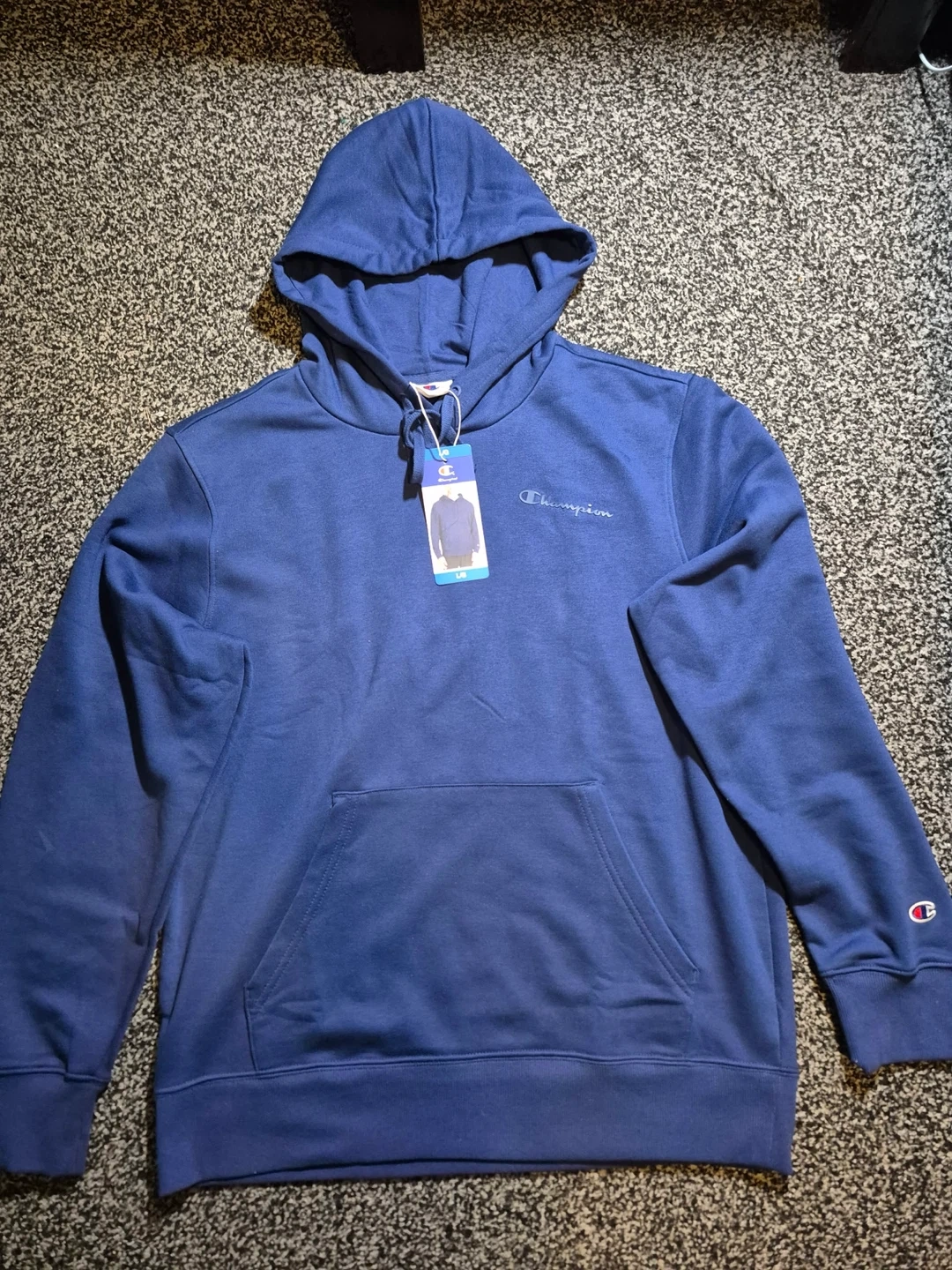 I'm selling a brand new Champion hoodie! It's a size large and still has the tags on it. The colour is a really nice blue! Bought it in Costco for 24.99 plus tax!