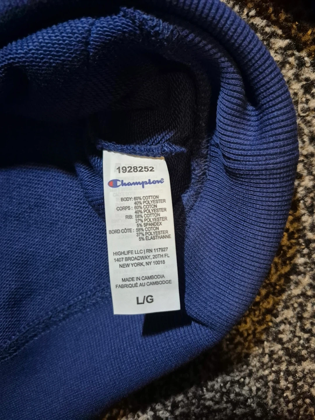 I'm selling a brand new Champion hoodie! It's a size large and still has the tags on it. The colour is a really nice blue! Bought it in Costco for 24.99 plus tax!
