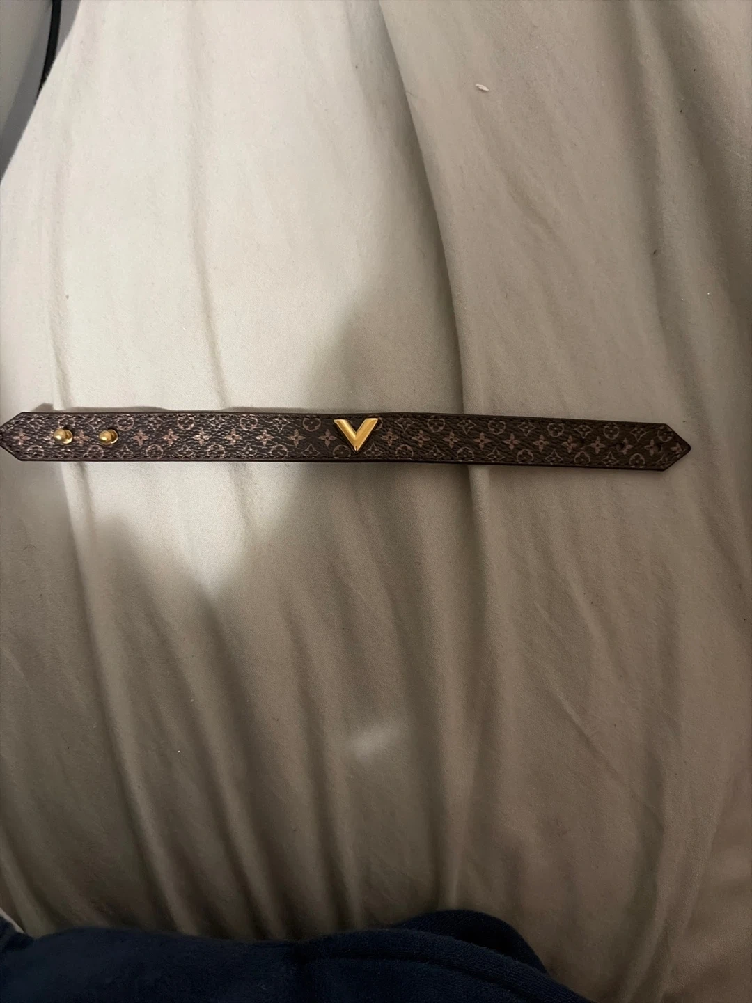 Selling a Louis Vuitton bracelet. It's in great condition and has a stylish design. Feel free to message me if you're interested!