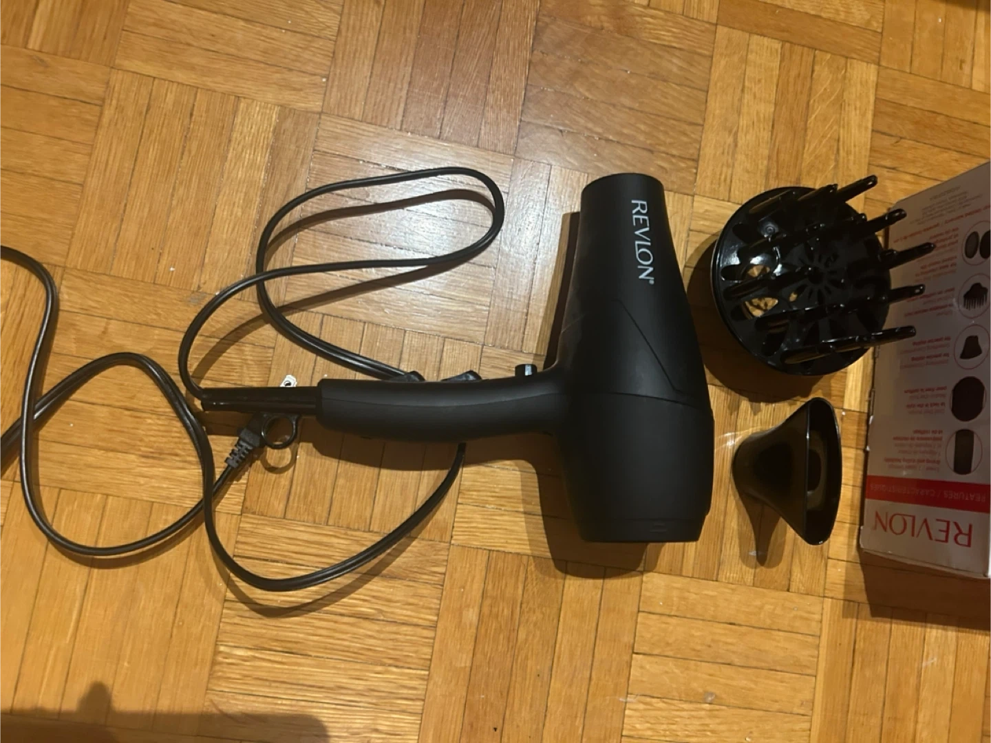 Selling a Revlon hair dryer in great condition! It comes with a diffuser and concentrator attachment. This hair dryer is designed to provide lift, body, and volume while reducing frizz and adding shine.