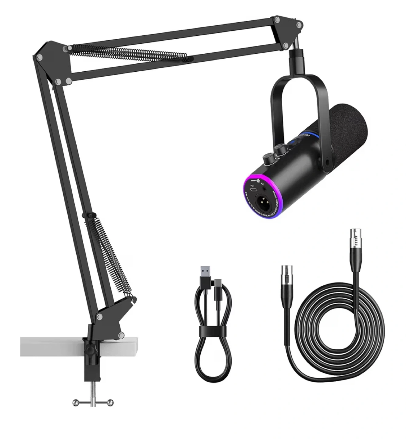 XLR/USB Podcast Microphone, Gaming Mic with Mute Button, Reverb Effects, Noise Cancellation, Boom Arm Stand, Headphones Jack, Dynamic Microphone for Streaming/Recording/Gaming/Vocal-Black
