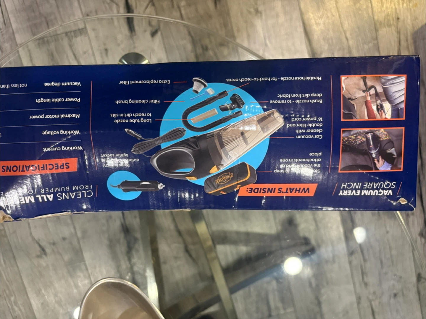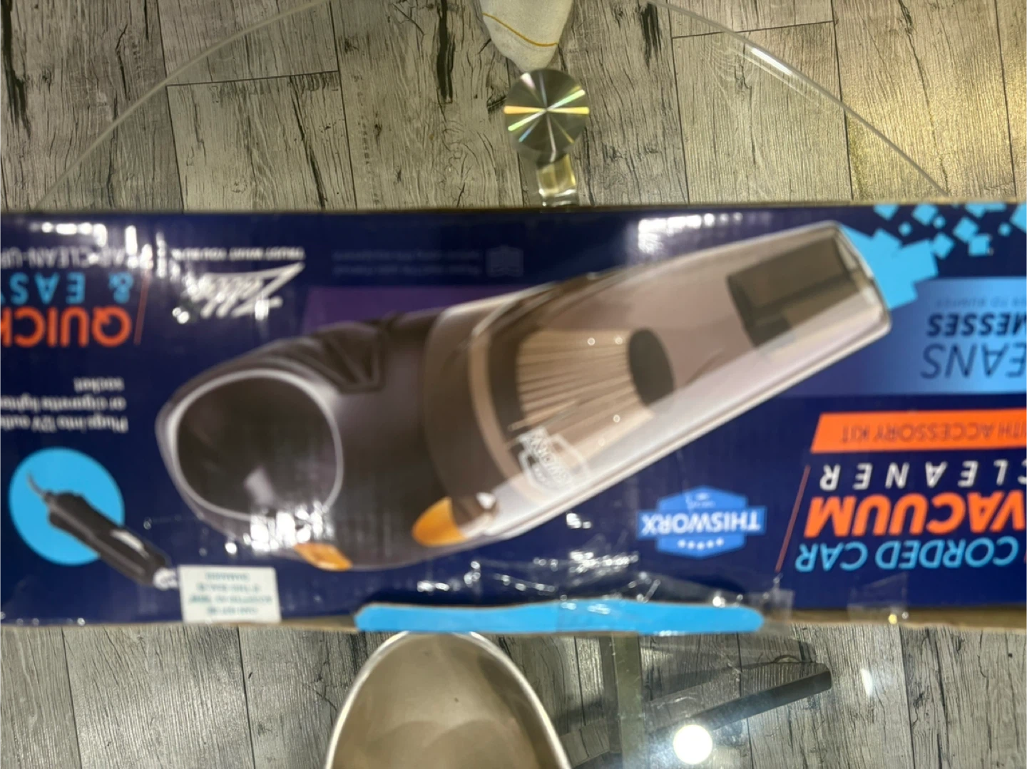 Selling a THISWORX corded car vacuum cleaner. It's designed to clean all messes from bumper to bumper and is quick and easy to clean up. Includes a flexible hose nozzle for hard-to-reach areas, a brush nozzle to remove deep dirt from fabric, and a long tube nozzle to reach dirt in slits. It also comes with an extra replacement filter and a car vacuum cleaner with double filter and attachments in one place