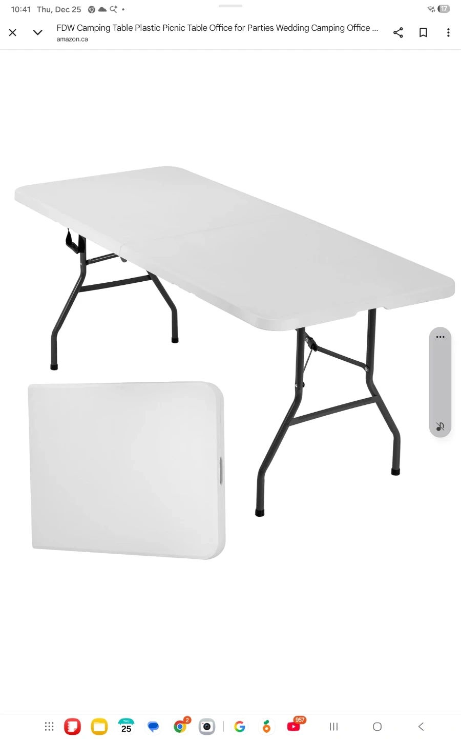 Selling a handy folding table, perfect for camping, picnics, or even as an extra surface in your home office! It's easy to store when not in use because it folds up neatly. Great for parties and weddings too!