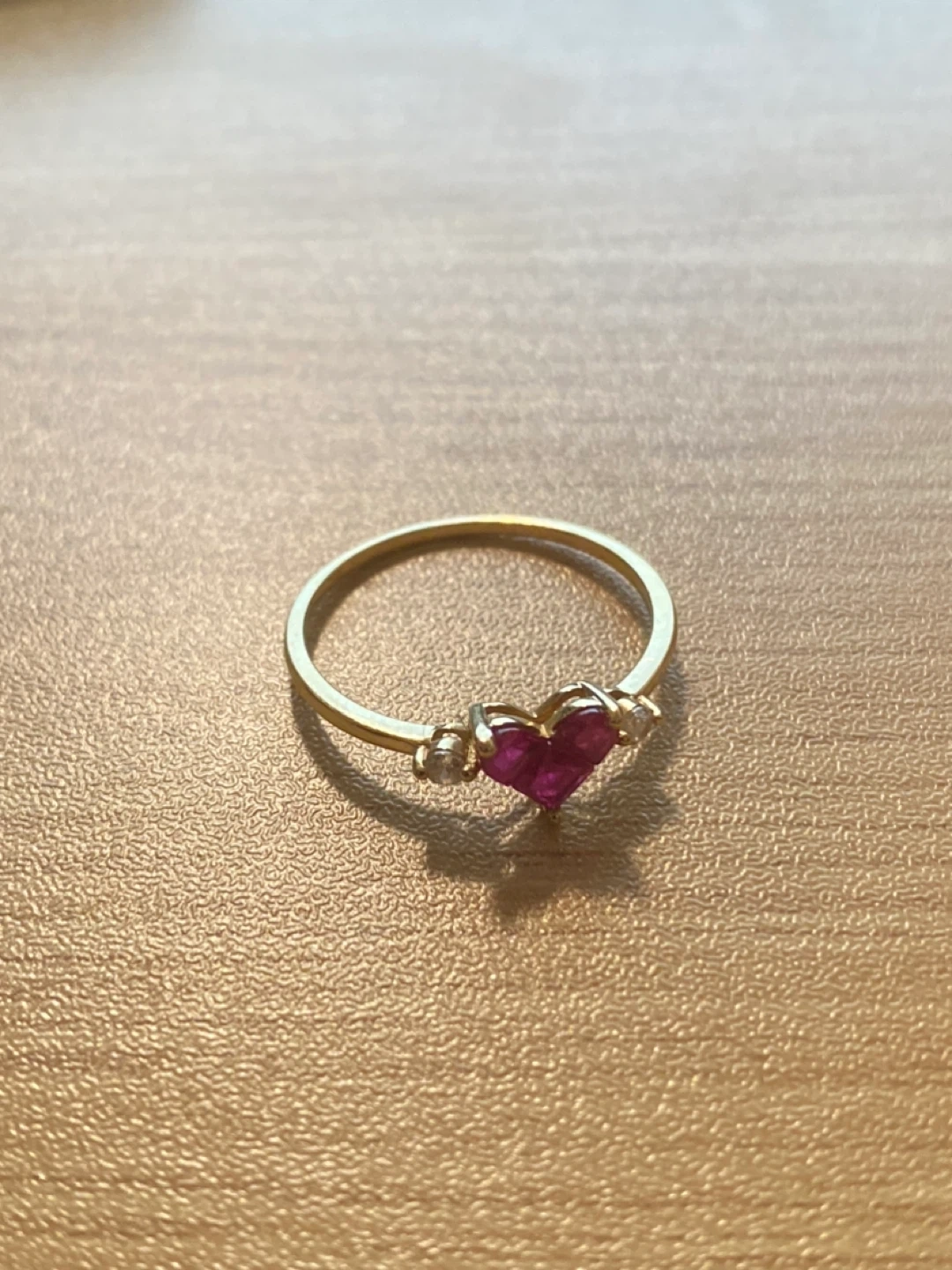 Buy & Sell14K Gold Ruby Heart Ring14K Gold Ruby Heart Ring$415It features a ruby heart, diamonds, and a delicate solid 14K gold band.ConditionLike newSize6.5WHERE TO MEETCheck LocationView MapSELLERverifiedHarrisonHumewood23216 reviews0 chats·9 favorites·218 viewsSEND CHAT TO SELLERHi Harrison! I’m interested in your listing.Hi Harrison! I’m interested in your listing.Get the Karrot app to chatSign In to chat
