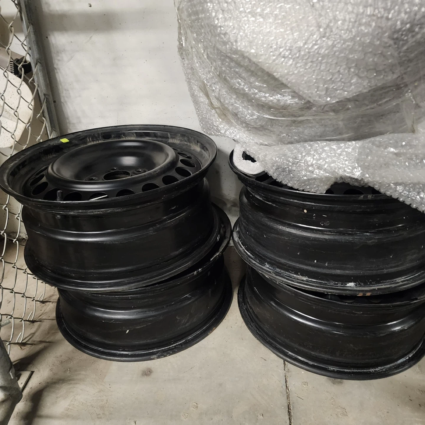 Selling a set of black steel wheel rims. They show some signs of use, but are in overall good condition and ready to be mounted on your vehicle. Perfect for winter tires or as a spare set!