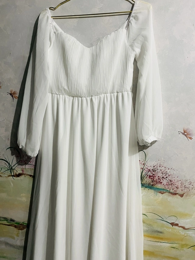 This is a brand new beautiful, flowing white dress, perfect for a special occasion or a stylish everyday look. It has long sleeves, and a flattering silhouette. Don't miss out on this lovely dress! pick up is in Brampton near Sheridan College