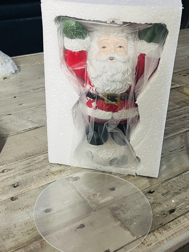 This Santa Claus figure, complete with rosy cheeks, Santa hat and santa suit, stands at the ready to hold milk and cookies when you place him near your fireplace chimney or beside the Christmas tree. Isn't this just the cutest Santa ever! Pickup is in Brampton near Sheridan College.
