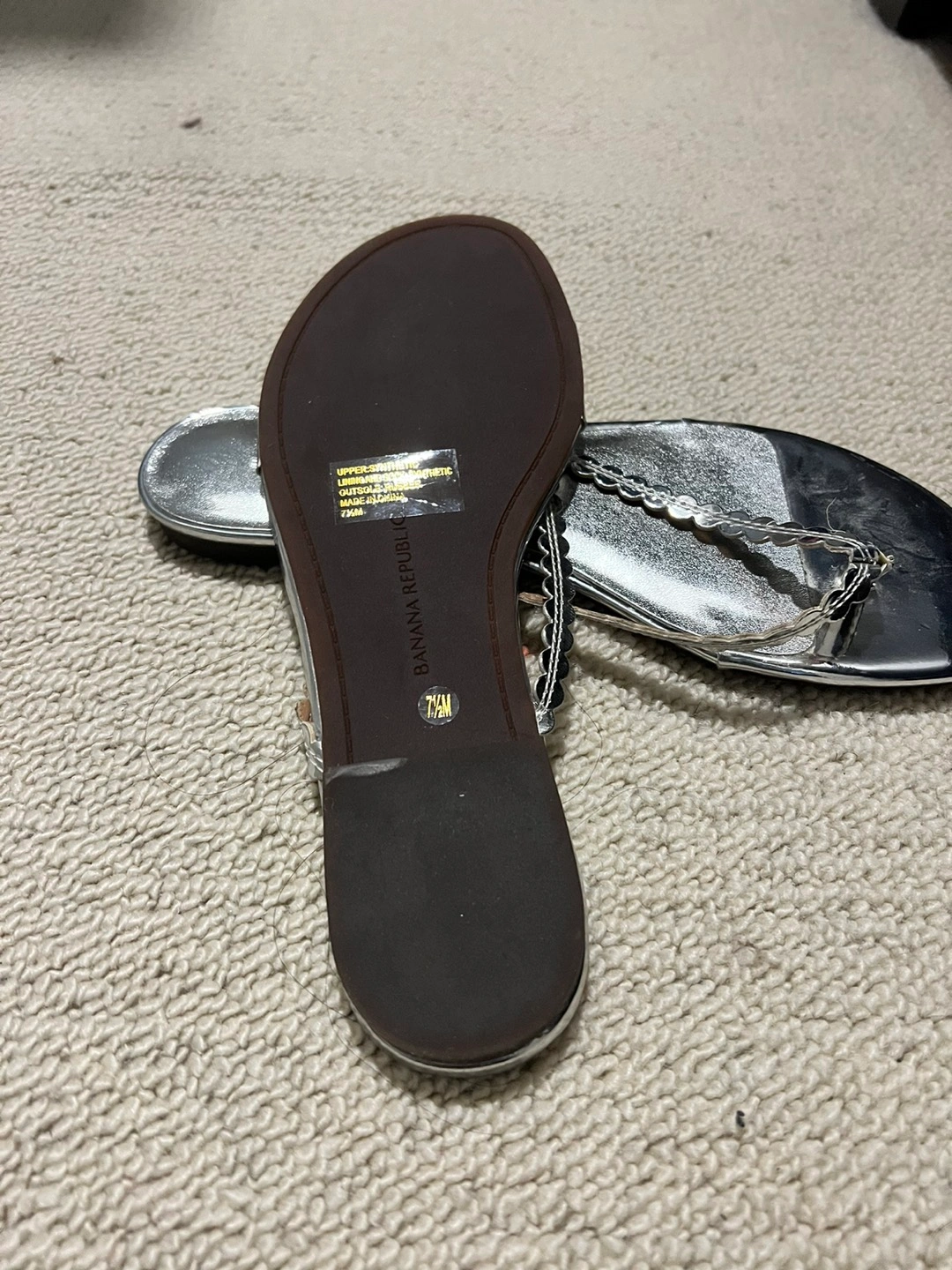 Buy & SellSilver sandalsSilver sandals$15Never used outdoors - beautiful silver Banana Republic sandals.ConditionNewSize7BrandBanana RepublicWHERE TO MEETWesbrookView MapSELLERJessieUBC211 review0 chats·0 favorites·4 viewsSEND CHAT TO SELLERHi Jessie! I’m interested in your listing.Hi Jessie! I’m interested in your listing.Get the Karrot app to chatSign In to chat