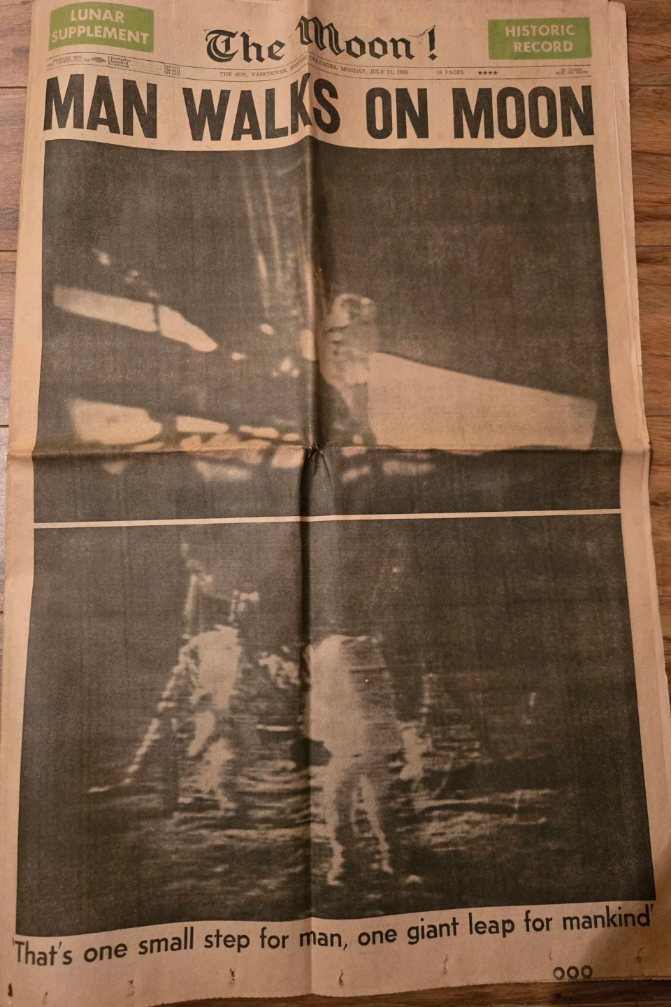 Vintage 'Man Walks on Moon' Vancouver Sun Newspaper