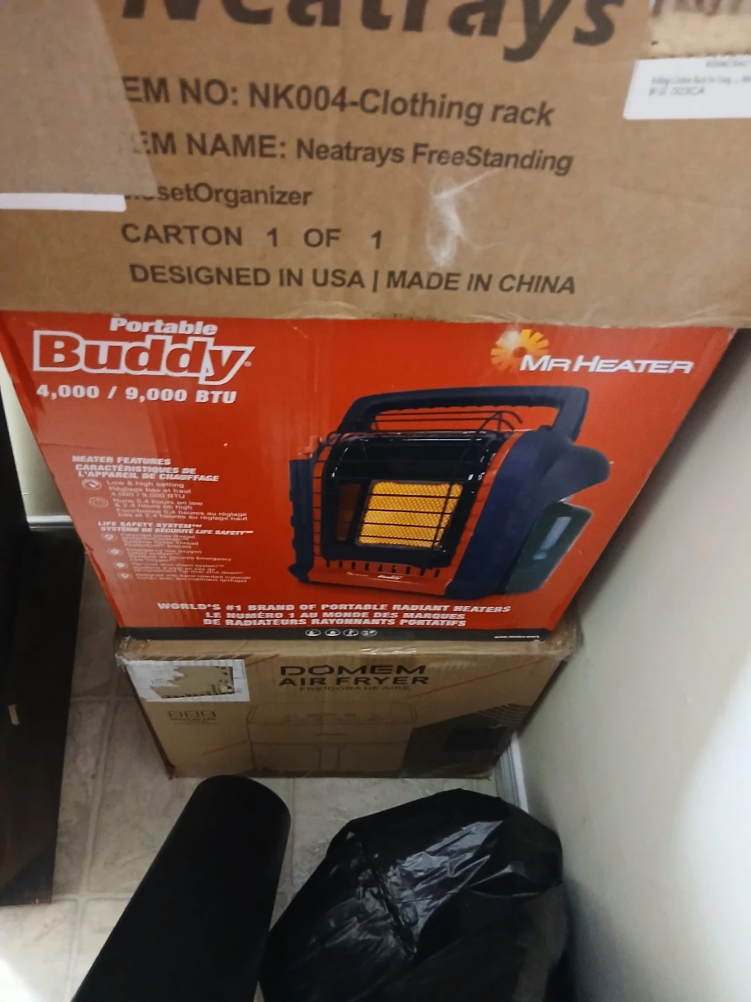 New Black and red portable heater. Handle on top