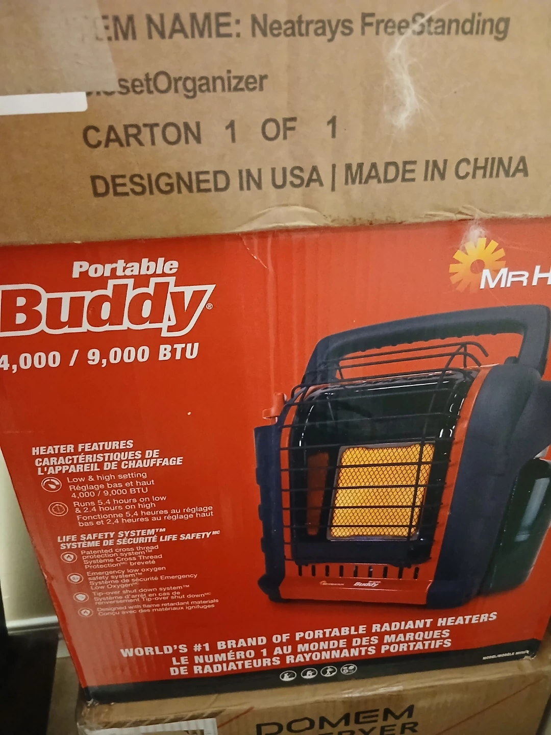 New Black and red portable heater. Handle on top