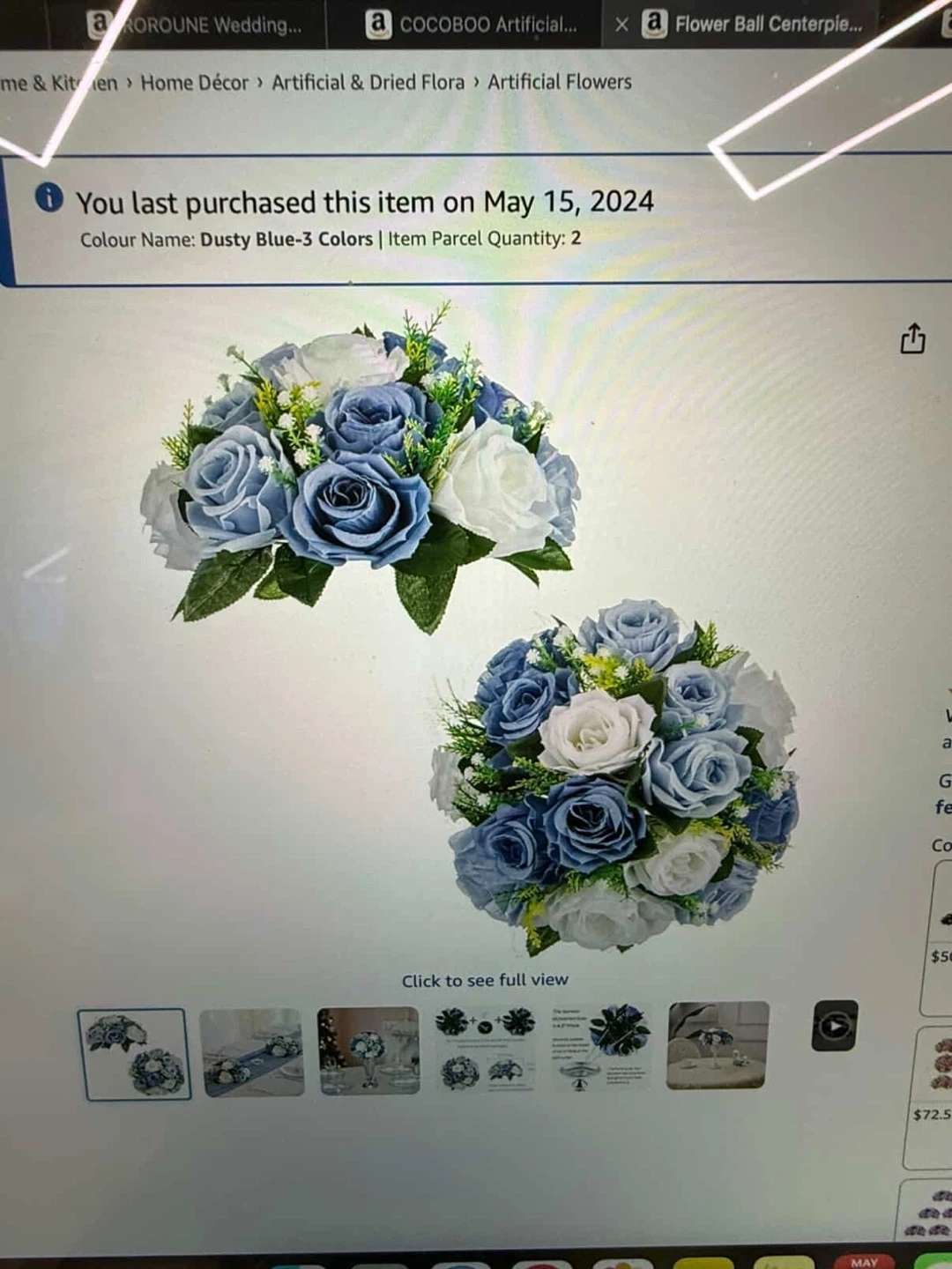 Selling a beautiful artificial flower centerpiece in dusty blue and white colours. It's perfect for weddings, parties, or home décor! The item parcel quantity is 2.