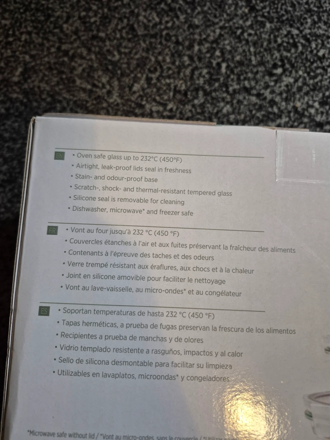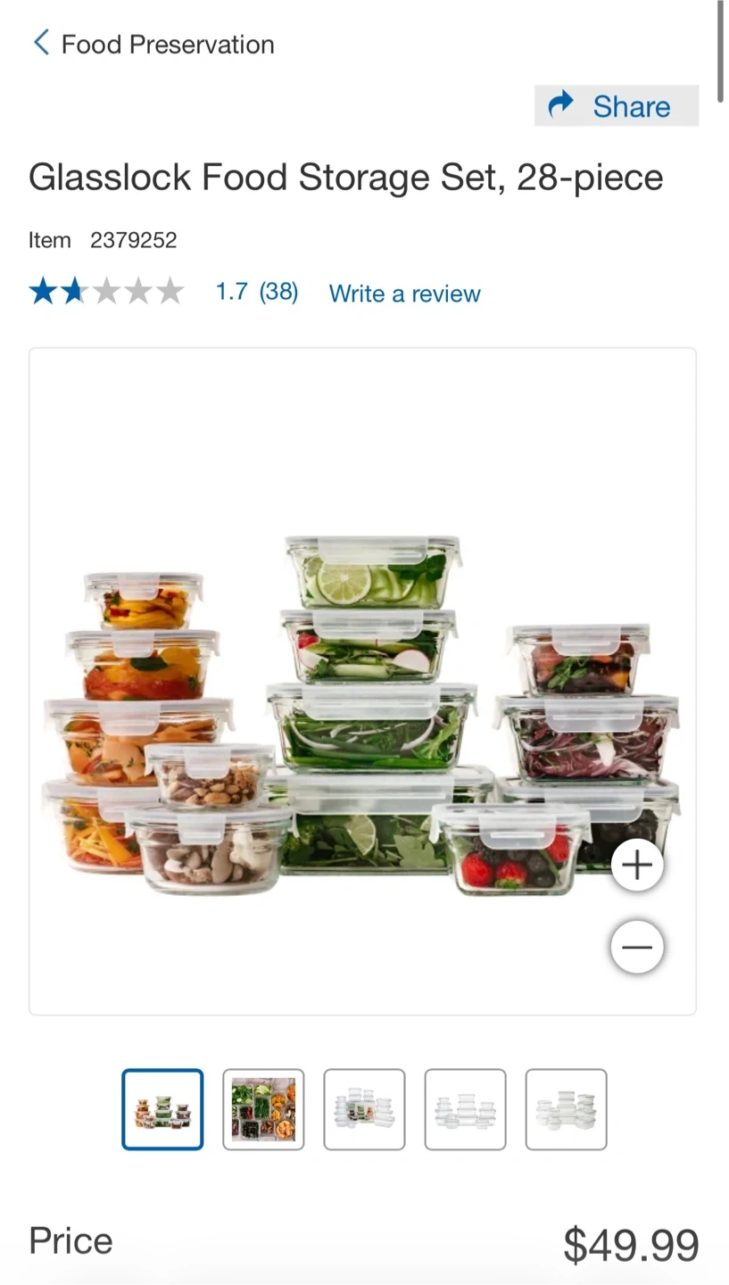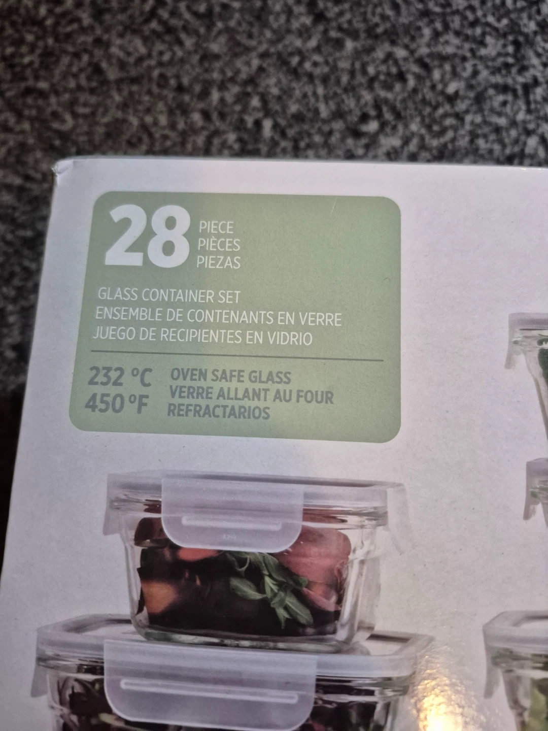 Selling a brand new Glasslock 28-piece glass container set! These containers are oven safe up to 232°C (450°F). The box includes an ensemble of glass containers, perfect for storing leftovers or meals! Never taken out of the box! Worth 50 dollars on Costco!