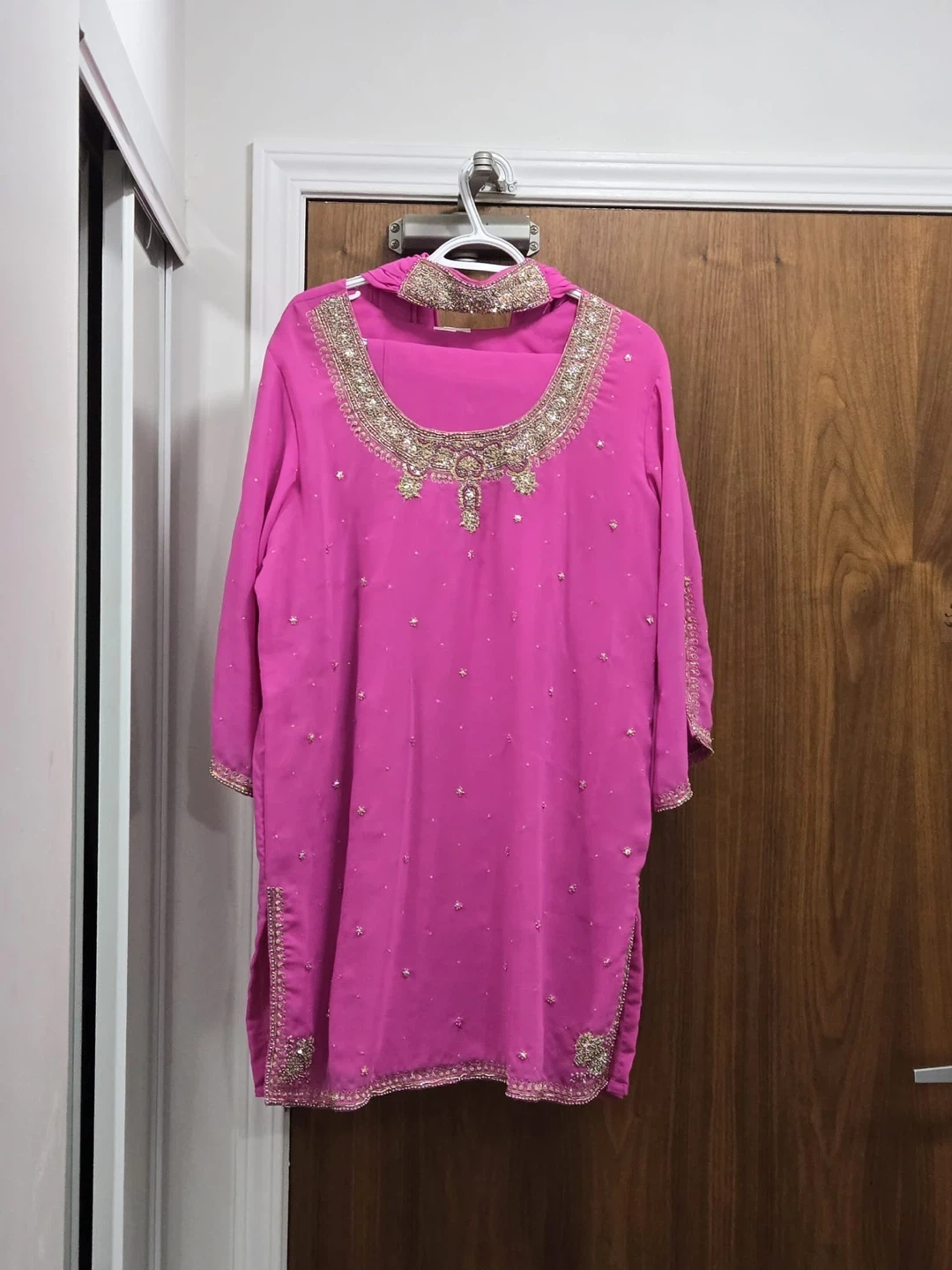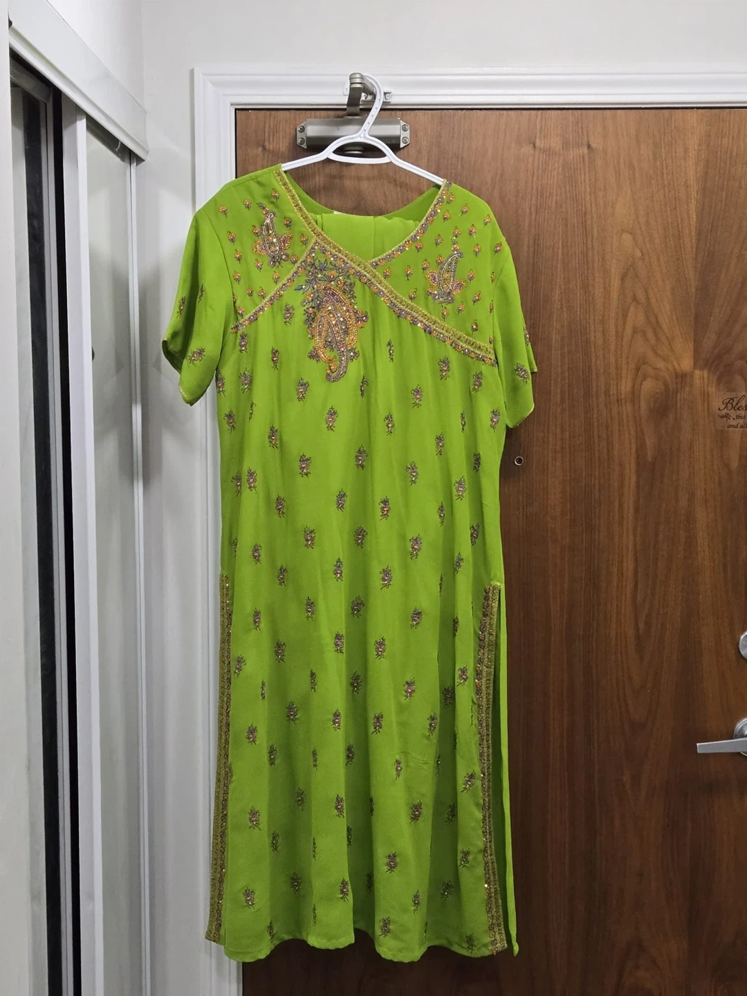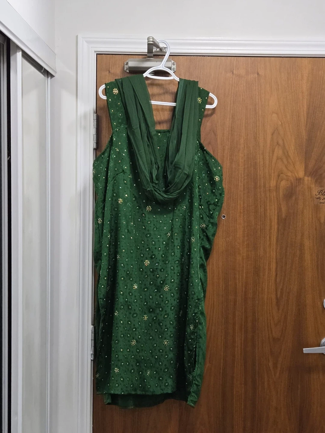 Selling a beautiful salwar kameez set. It's in great condition and perfect for special occasions! The set includes a kameez (tunic), salwar (pants), and dupatta (scarf).
