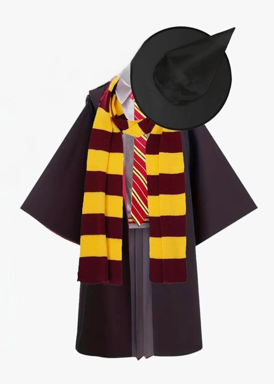 Wizard costume set, includes a robe, scarf, tie, hat, necklace and pins. Everyone wants to be a wizard, wear it, make your dream come ture. Never worn. Dress up as your favorite wizard for fun selfies and photo-shoots.