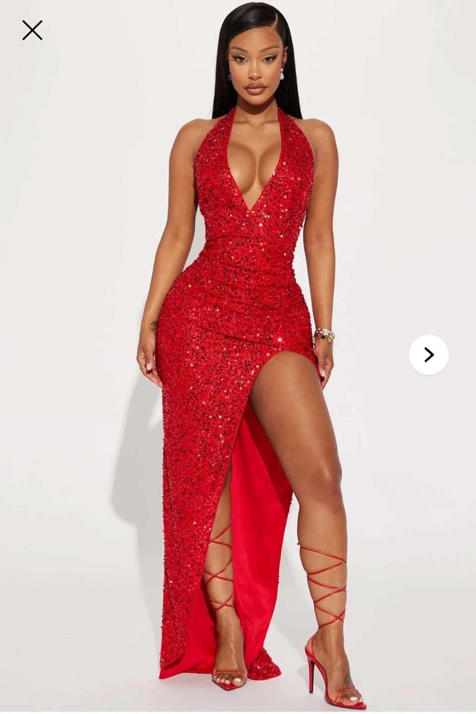 Selling two beautiful red dresses and matching heels from Fashion Nova! The dresses are stunning red colour and the heels complement them perfectly. They're in great condition (never worn) and ready for a night out! First dress is large size and other dress with the slit is medium size. The dresses are $38.99 each and the heels is $28.99. Heels is size 8.