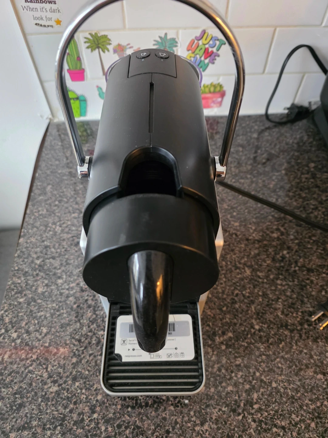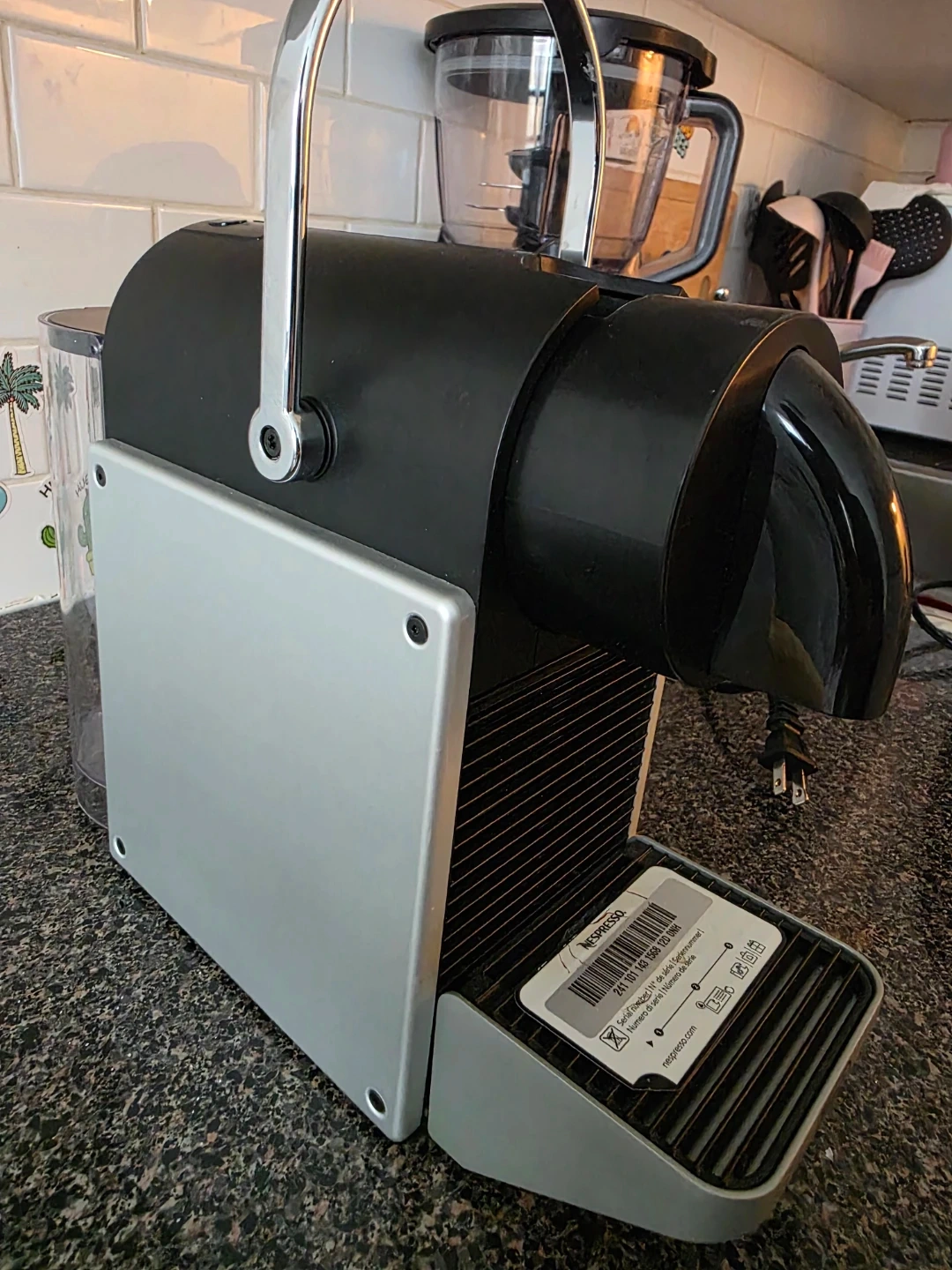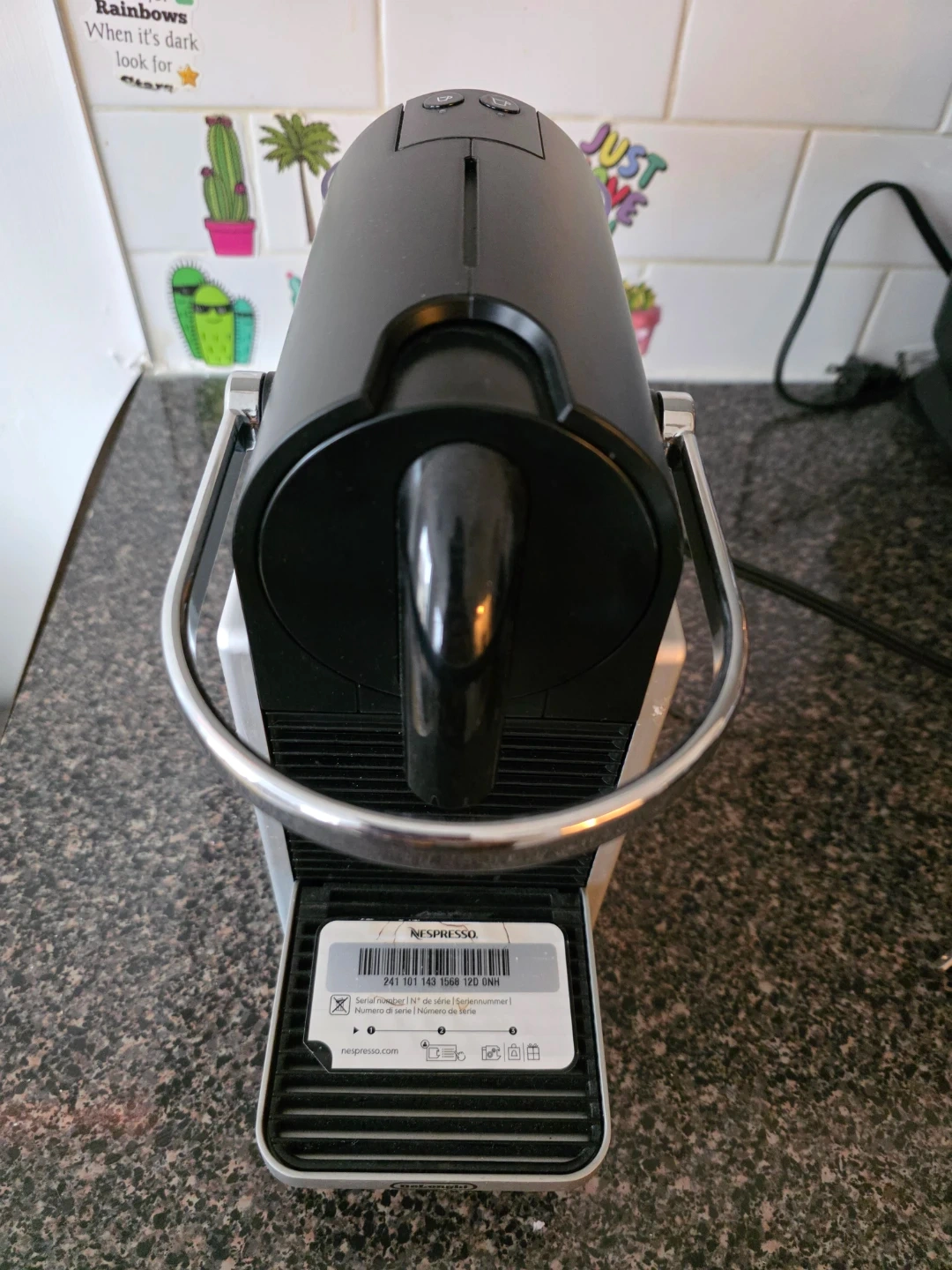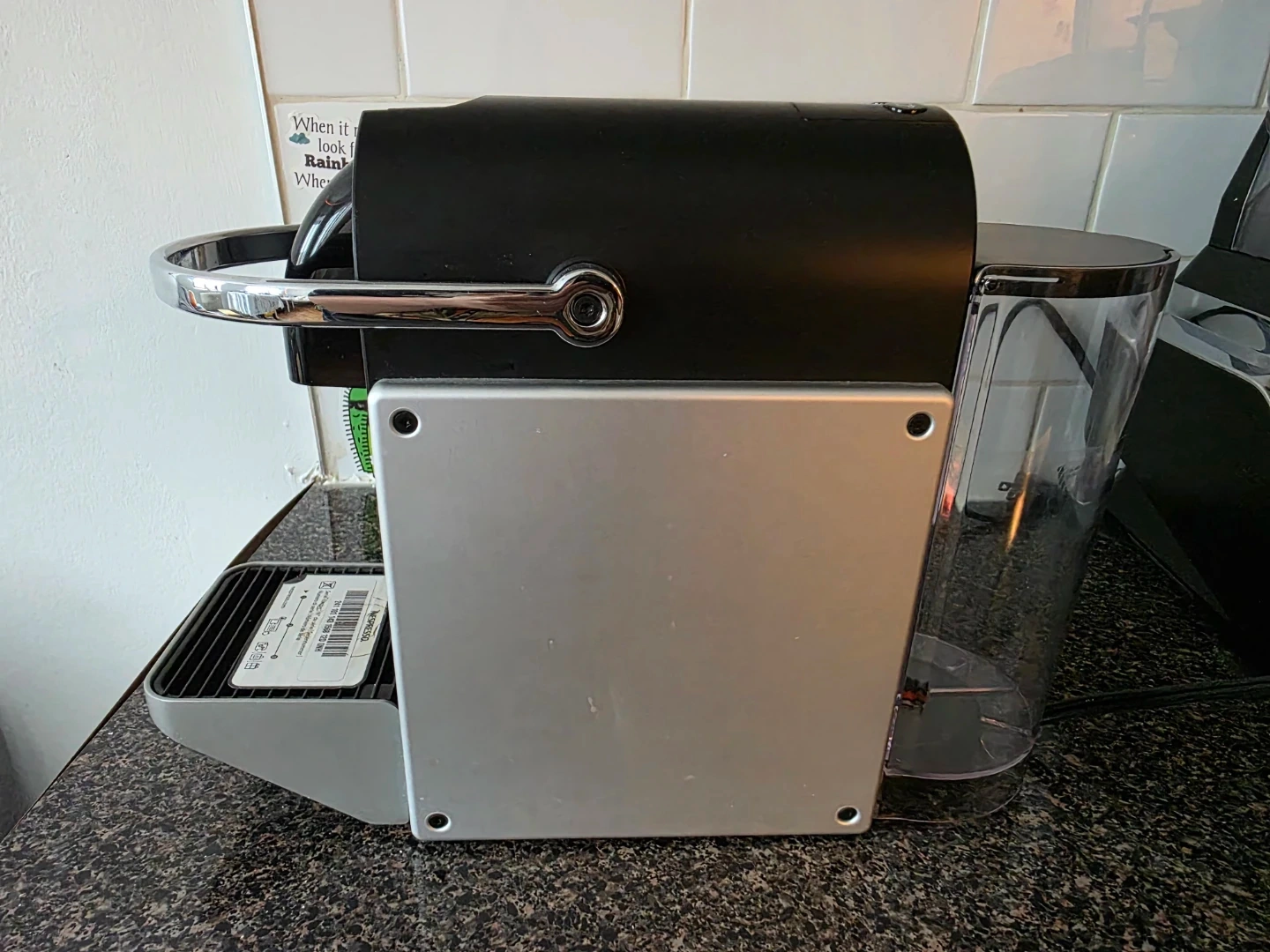Selling a Nespresso Essenza Mini coffee machine in black and silver. It's in great shape and ready to make delicious coffee! This compact machine is perfect for small spaces and delivers a rich, flavorful espresso with ease.