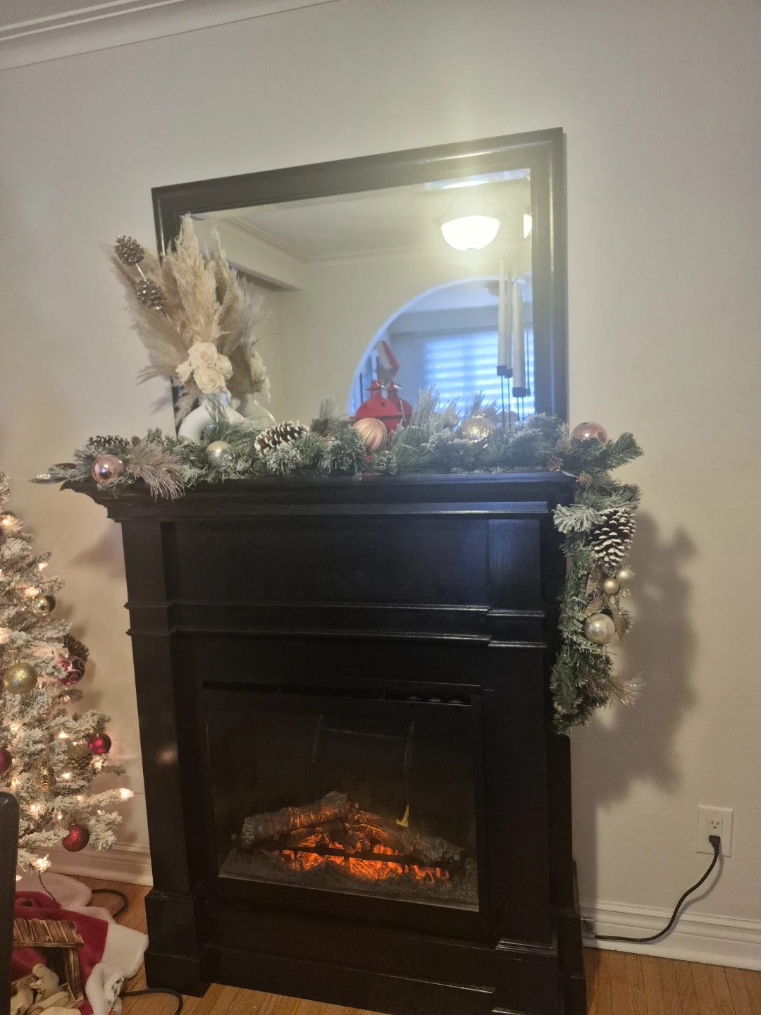 Selling a black electric fireplace. It's in great condition and adds a cozy touch to any room. Perfect for creating a warm and inviting atmosphere!