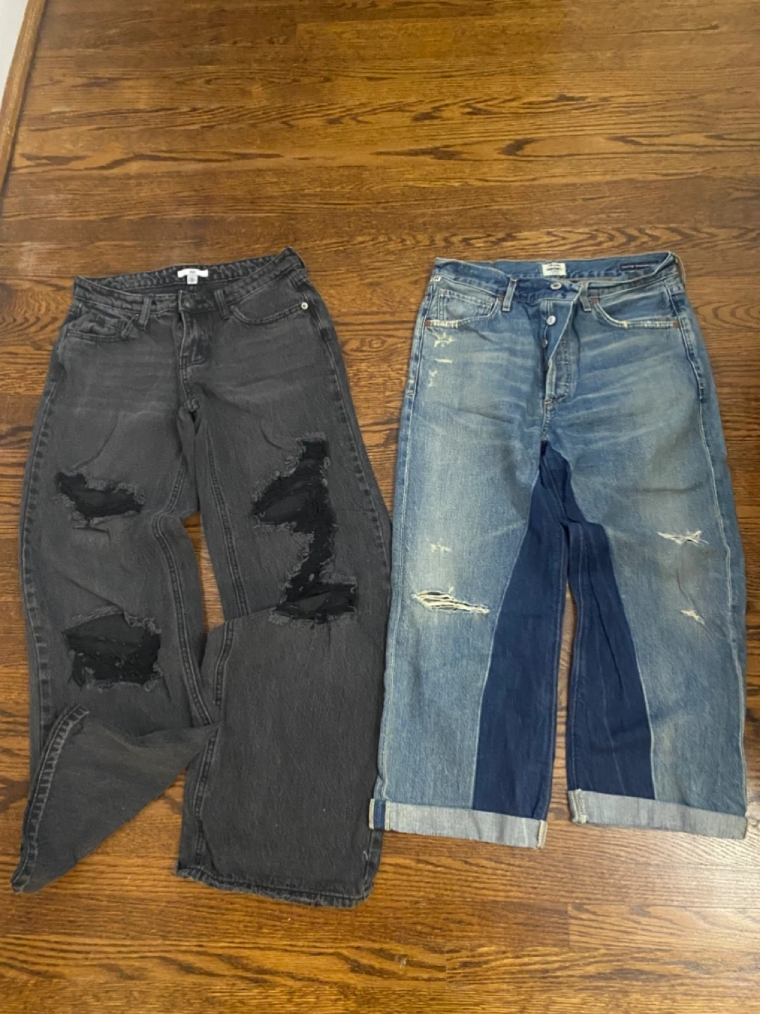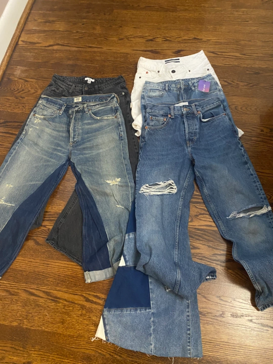 Selling a lot of assorted jeans in various styles and colours! There are a few different brands including: citizens of humanity, Hudson’s, topshop, SHEIN. Great for someone looking to expand their wardrobe with some unique pieces. Jeans are size 25/26. Please refer to pictures for more details on style.