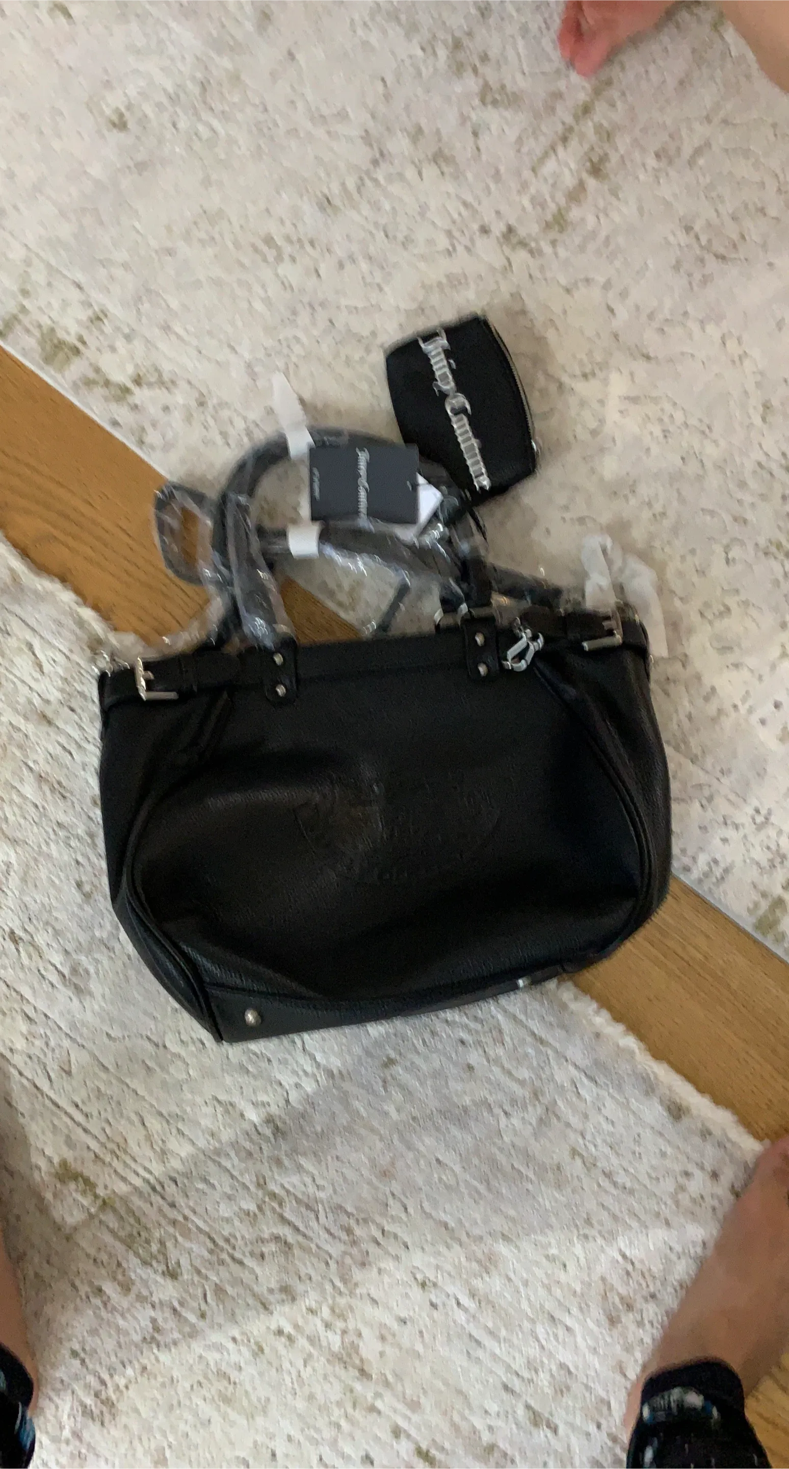 Selling a Juicy Couture black leather shoulder bag. It's in great condition and comes with a matching coin purse!