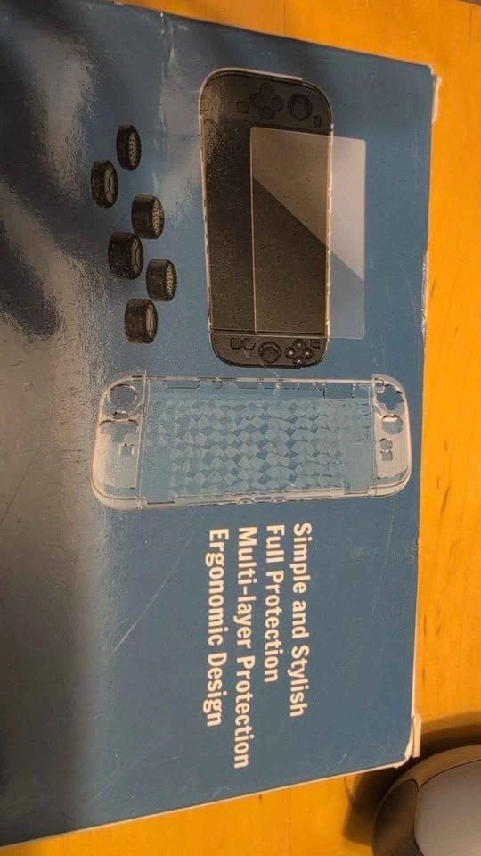 Includes: Clear TPU Grip Protective Cover Case with Shock-Absorption Design, Tempered Glass Screen Protector and 6 Thumb Caps