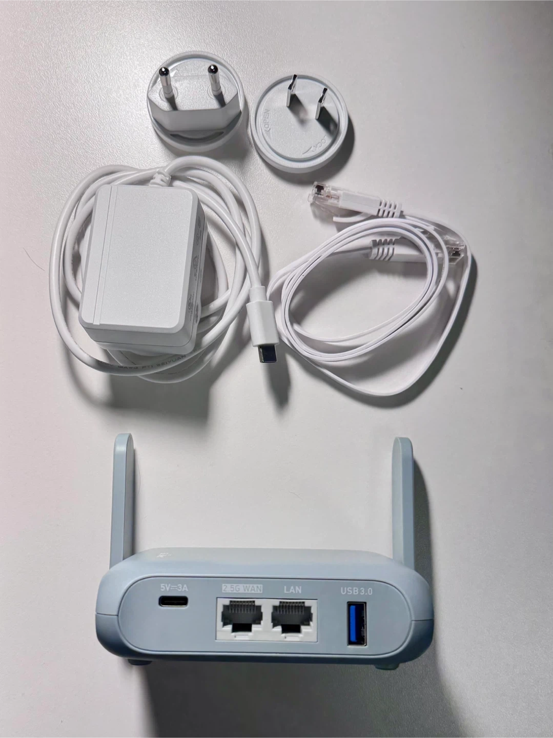 GL.iNet Beryl AX (GL-MT3000) Wi-Fi 6 travel router. Used in great condition. Comes with a travel case, worldwide power adapter with North American and European plugs, and a flat Ethernet cable.