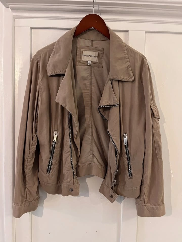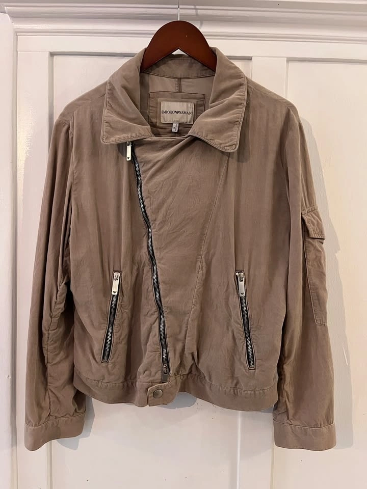 Lightweight Emporio Armani jacket with an asymmetric zip front and utility-style details.