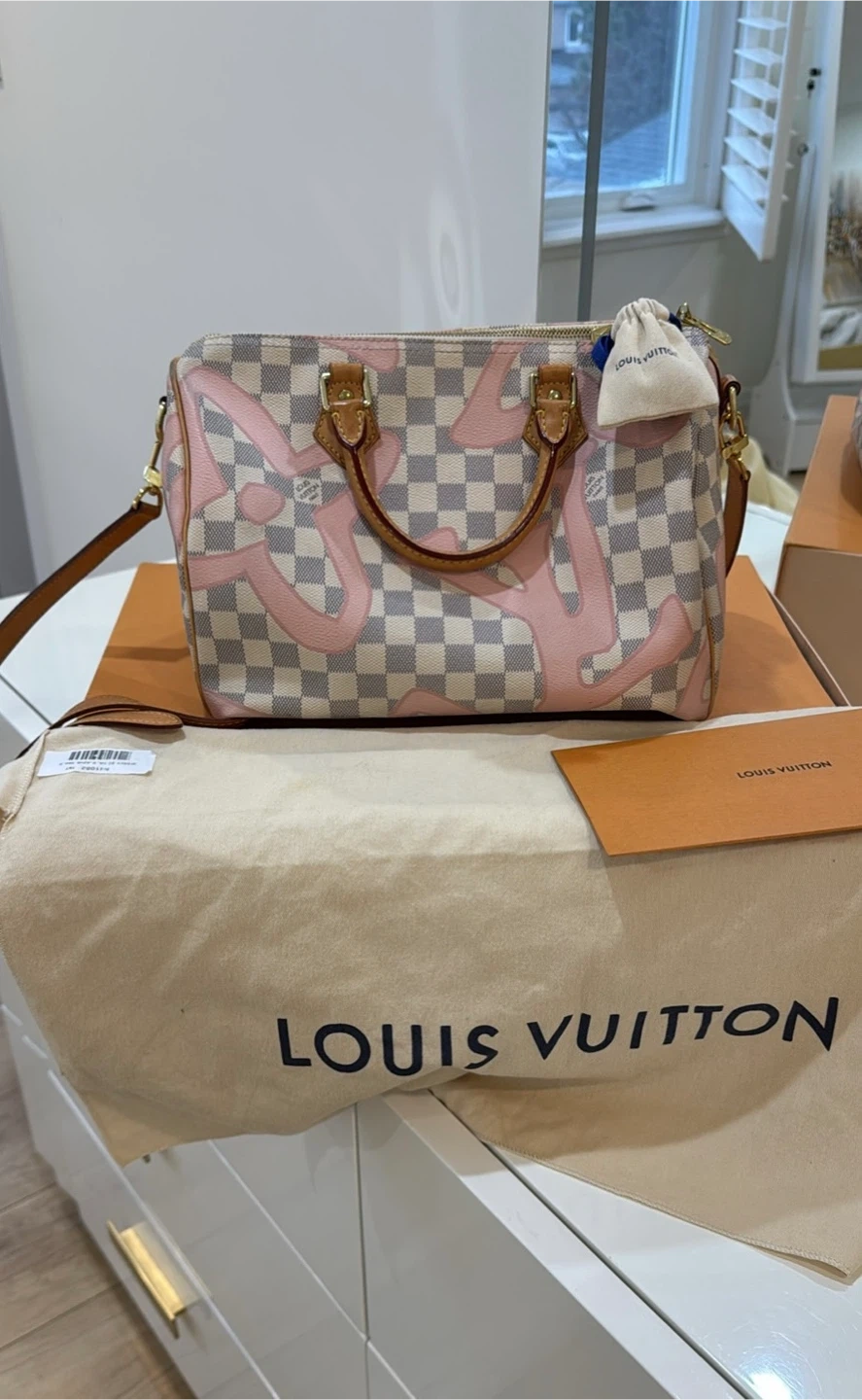 This is a Louis Vuitton Damier Azur Tahitienne Speedy 30 Bandouliere bag.
