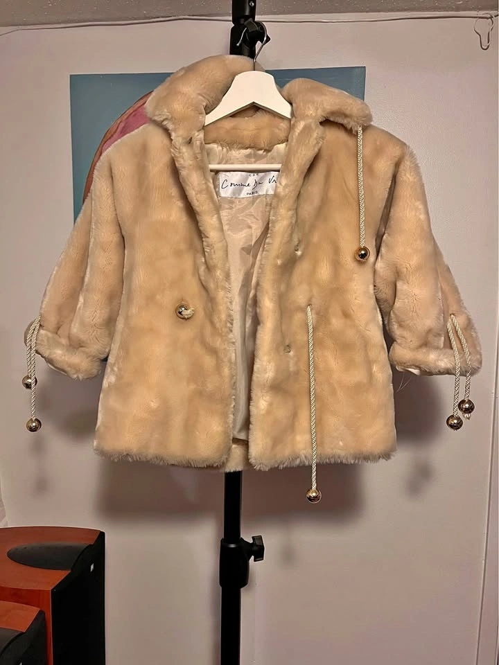 Adorable luxury-style faux fur coat with gold bell details π