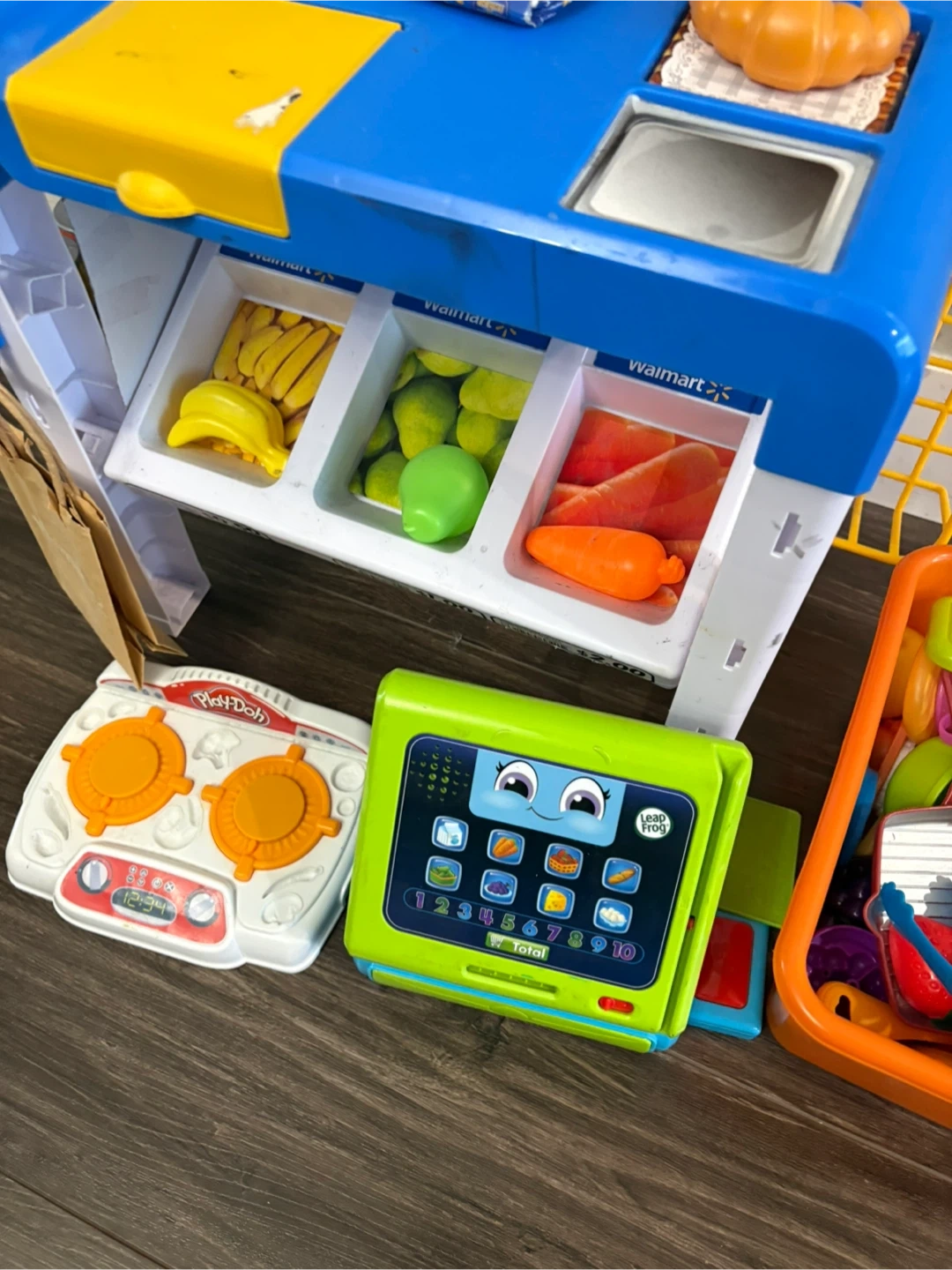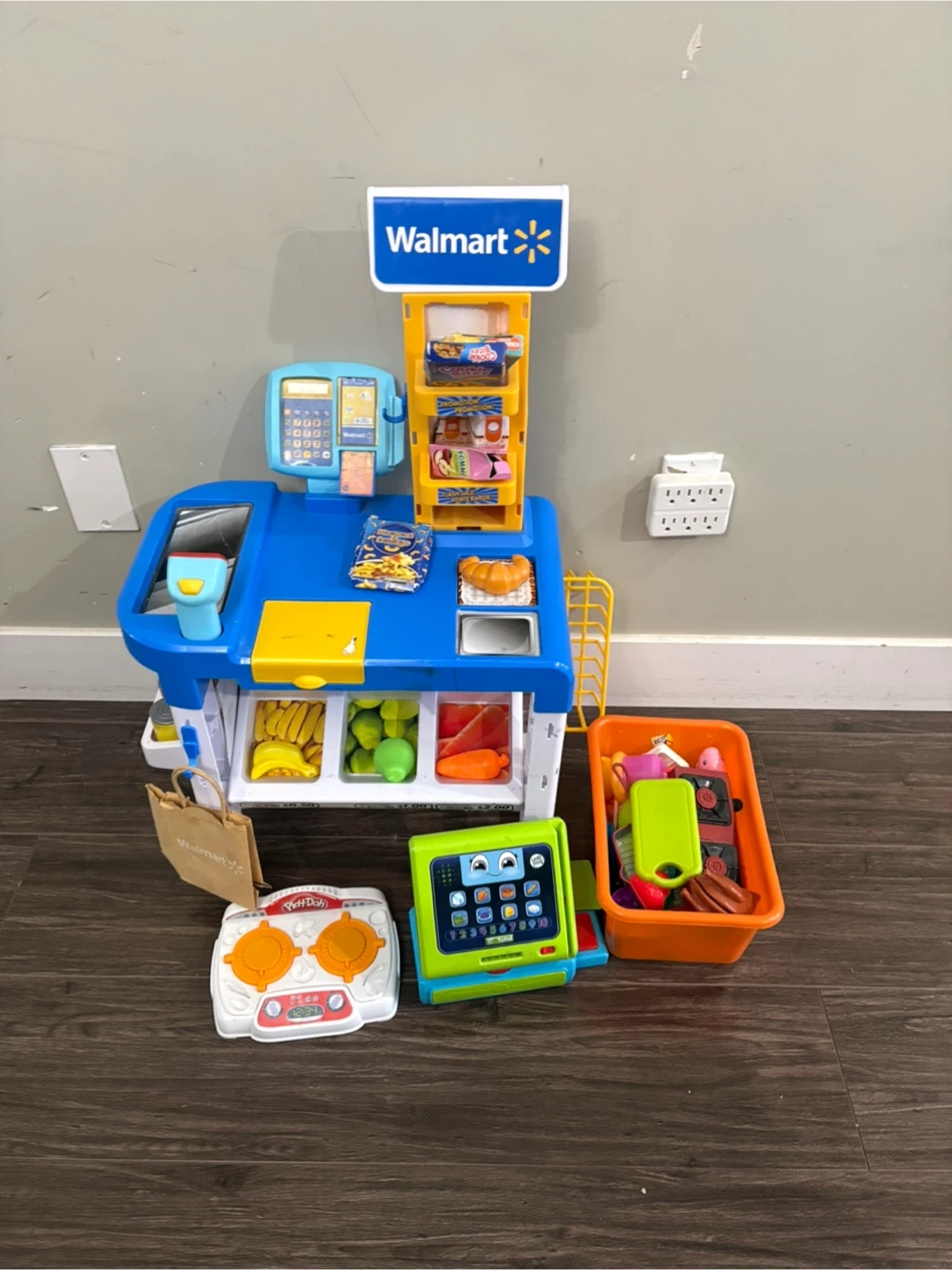 Selling a Walmart pretend play cash register. It comes with various accessories for fun imaginative play! Includes play food, cooking accessories. Great for kids who love to play store!