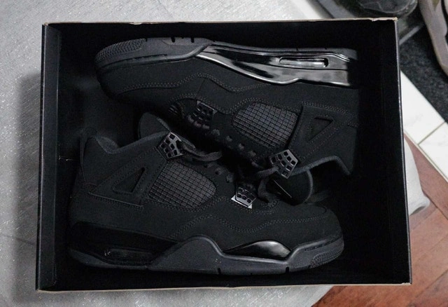 Here are a pair of essentially brand new Air Jordan 4 Retro Black Cat shoes in men's size 10. These stylish sneakers feature a sleek, all-black design with the iconic Jordan silhouette, perfect for both athletic performance and casual wear. The shoes are in good condition, showing some signs of wear, which only adds to their unique character. Check out the detailed photos to see the exact condition.