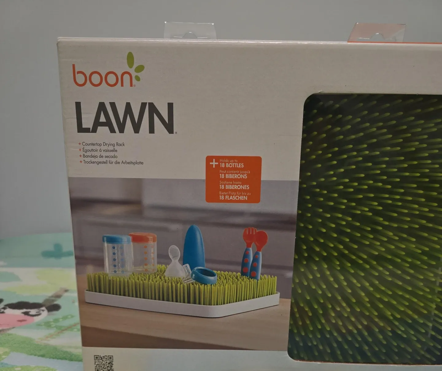 Selling a brand new Boon Lawn countertop drying rack still in its original packaging! This handy rack holds up to 18 bottles and accessories, making it perfect for keeping your baby's feeding gear organized and dry. A great addition to any kitchen!