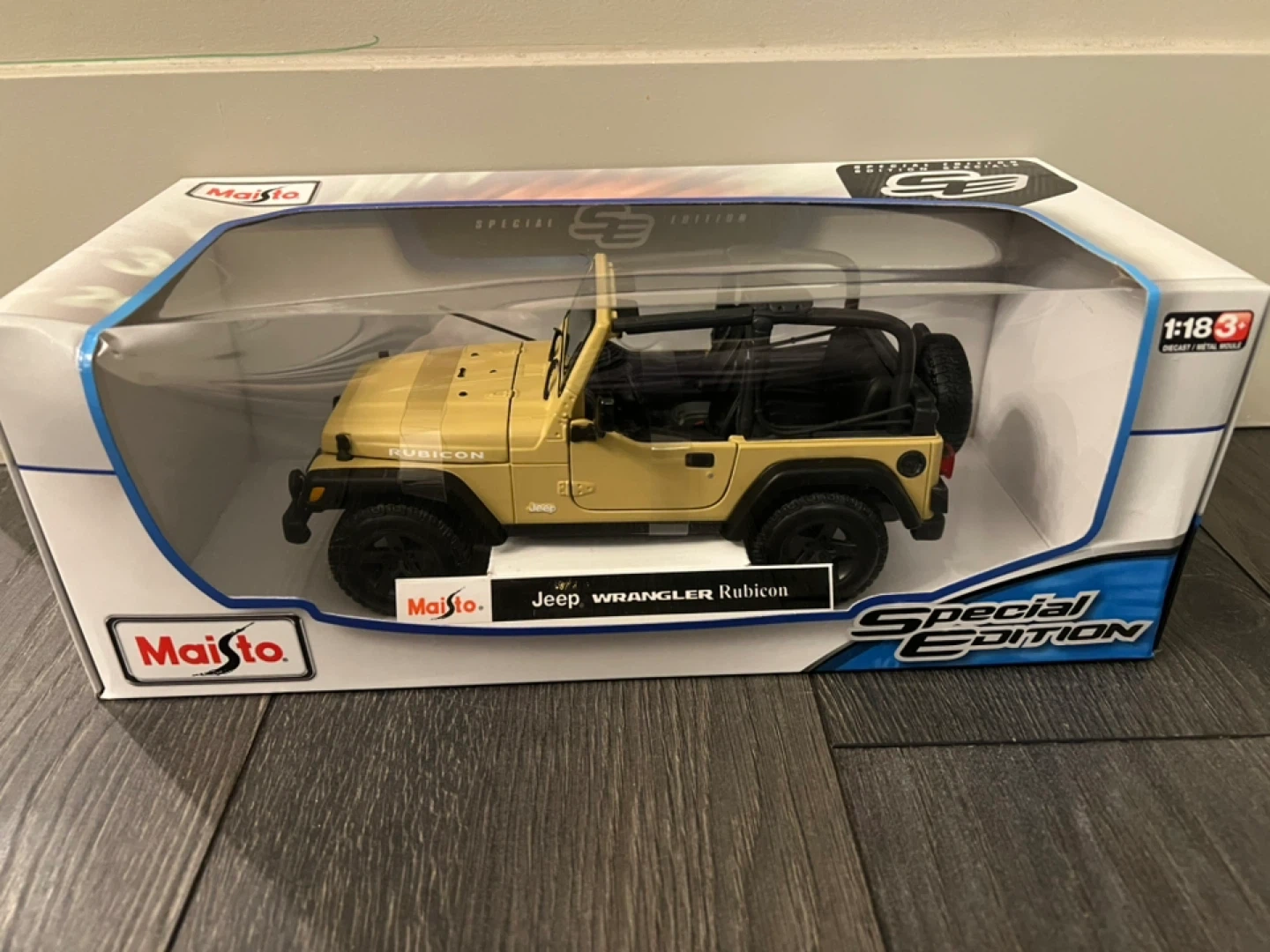 Selling a Maisto Jeep Wrangler Rubicon Special Edition diecast model car. It's in the 1:18 scale and comes in its original box! A great addition to any collection or a fun toy for kids