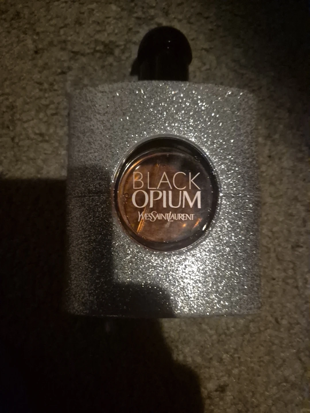 Selling a bottle of Yves Saint Laurent Black Opium perfume. It's a lovely fragrance, perfect for any occasion! The bottle has a sparkly finish. No box barely used still a full bottle original price is $160