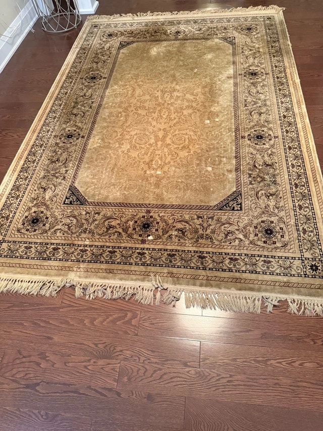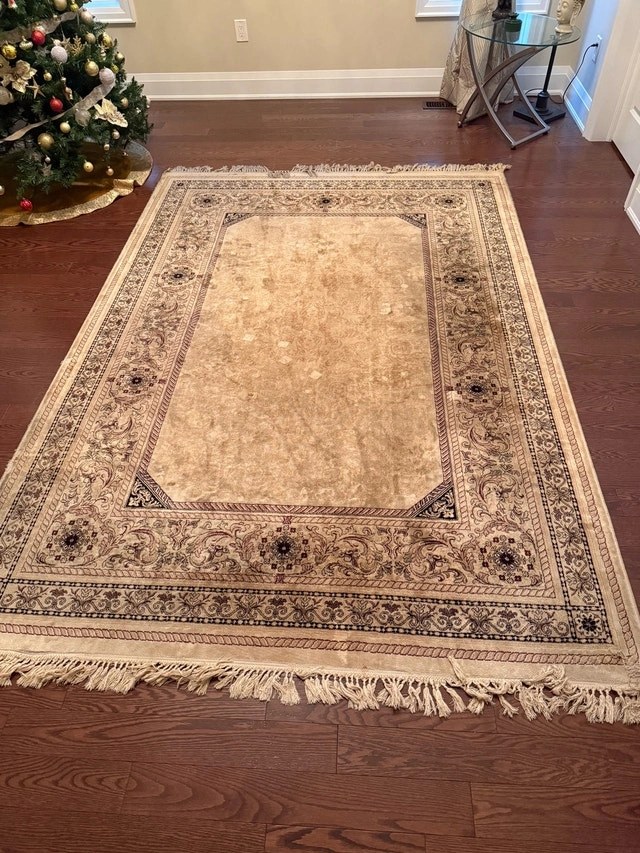 Add warmth and elegance to your home with this inviting area rug, perfect for any living space. This item is in used condition. Key Features: * Classic design that complements various décor styles. * Durable construction for long-lasting use. This rug has been a beloved part of our home, adding a touch of cozy charm. As with any item that's been well-cared for, it has a unique story to tell. It’s ready to find a new home and bring its character and comfort to you. If the ad is up, it’s available!