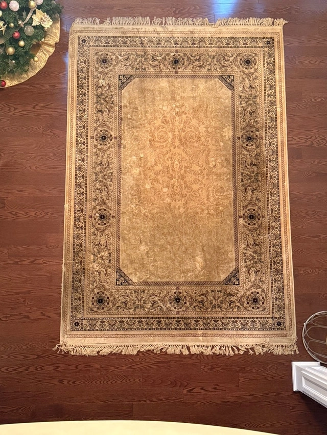 Add warmth and elegance to your home with this inviting area rug, perfect for any living space. This item is in used condition. Key Features: * Classic design that complements various décor styles. * Durable construction for long-lasting use. This rug has been a beloved part of our home, adding a touch of cozy charm. As with any item that's been well-cared for, it has a unique story to tell. It’s ready to find a new home and bring its character and comfort to you. If the ad is up, it’s available!
