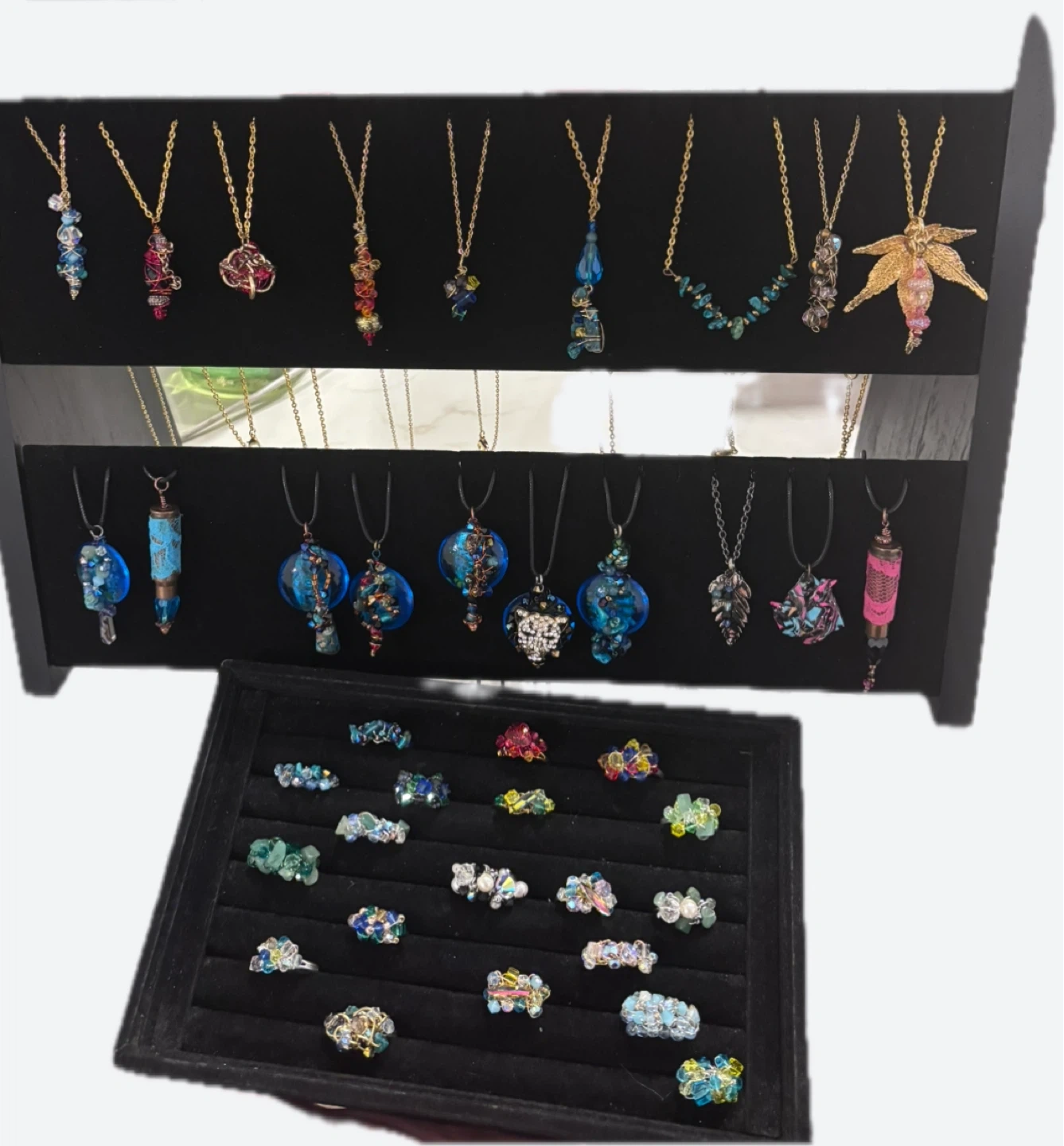 Selling a variety of handmade beaded necklaces and adjustable rings!