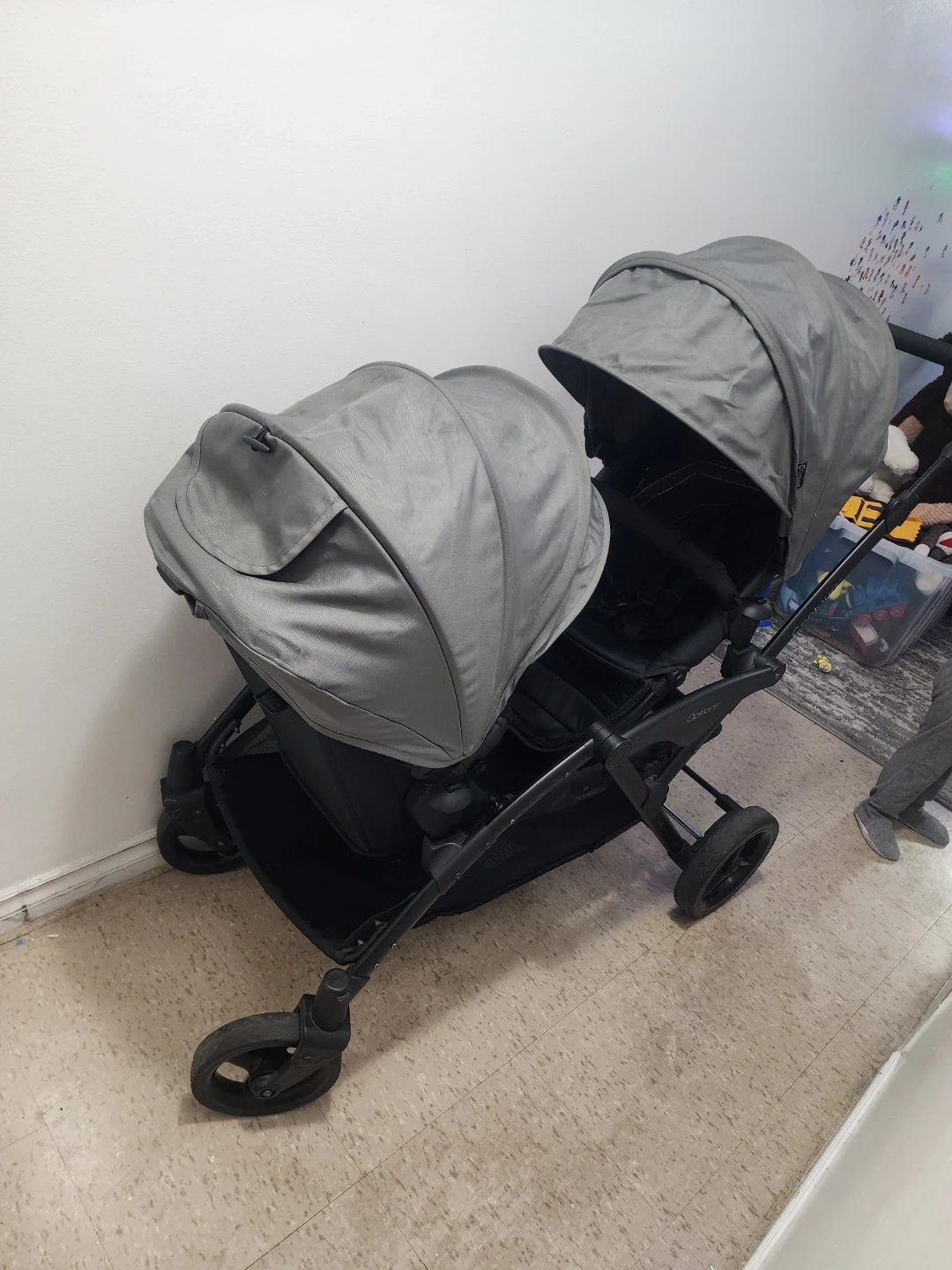Selling a Contours Options double stroller in grey. It's in great condition and ready for a new family! Perfect for twins or siblings close in age. It's a versatile stroller that can be configured in multiple ways to suit your needs