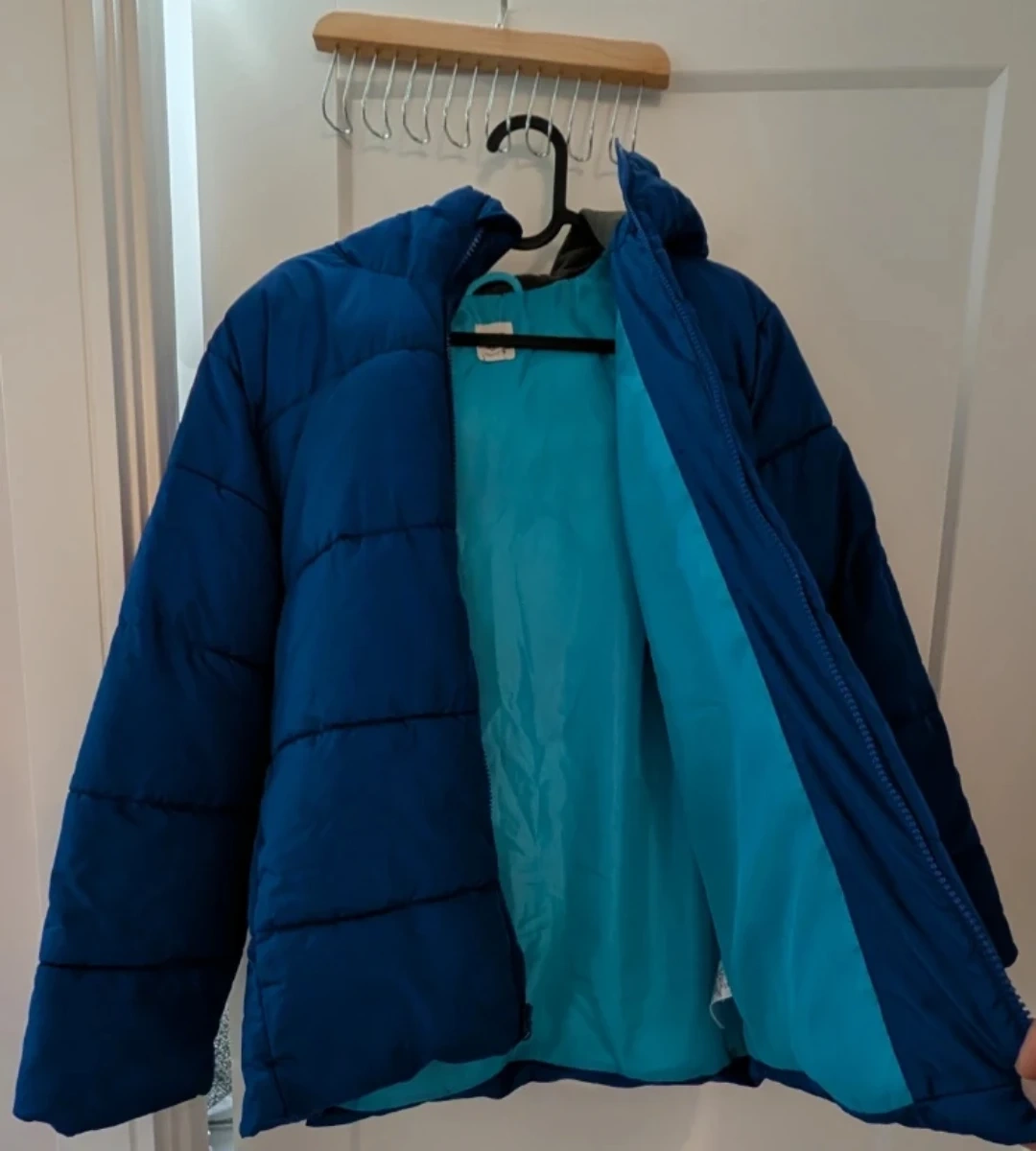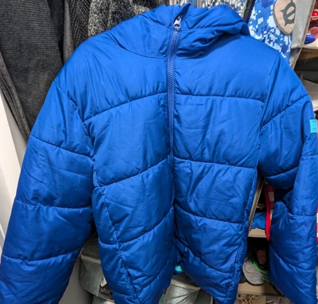 I'm selling a blue GAP puffer jacket. It's in great condition and ready for the cooler weather! The jacket features a hood and a comfortable fit. Perfect for staying warm and stylish!
