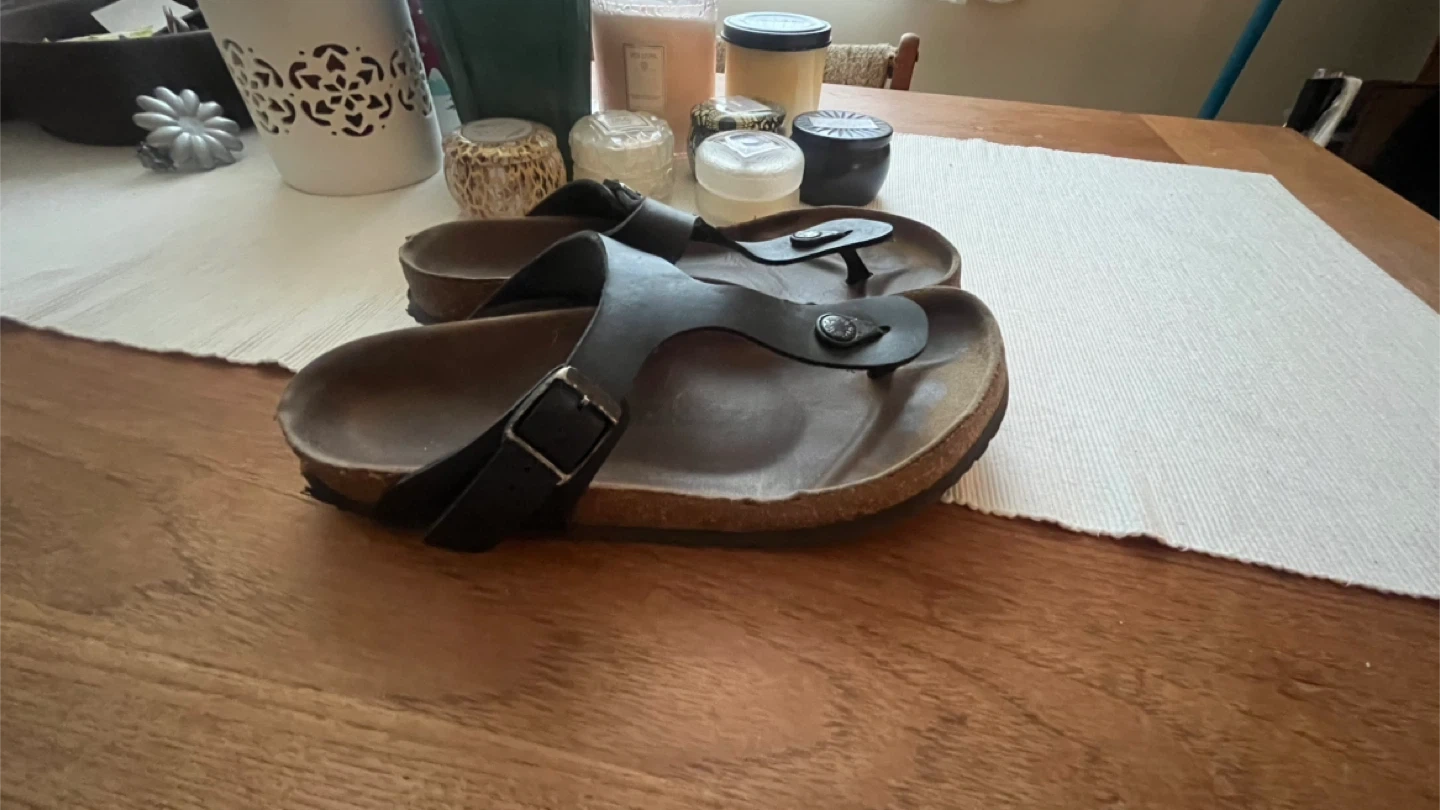 Selling a pair of Birkenstock sandals. They're size US 11 and in used condition, as shown in the photos. They still have lots of life left!