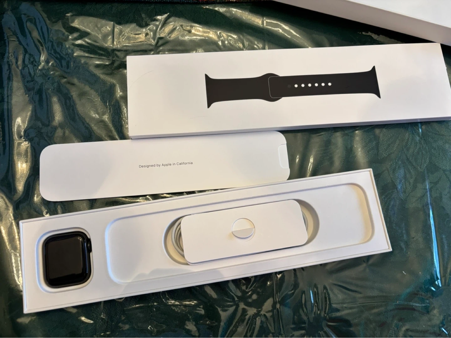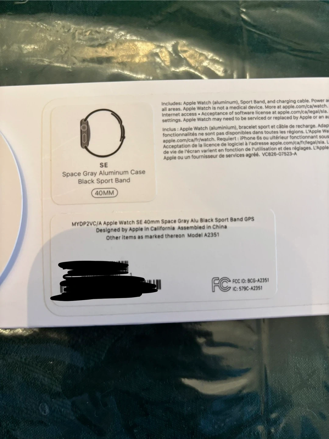 Apple Watch SE (1st gen) with a 40mm Space Gray Aluminum Case and Black Sport Band (S/M)! Still has the box and includes the sport band and charging cable. Beware the charging cables does have a few bite marks - courtesy of my cat.